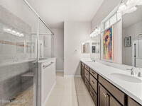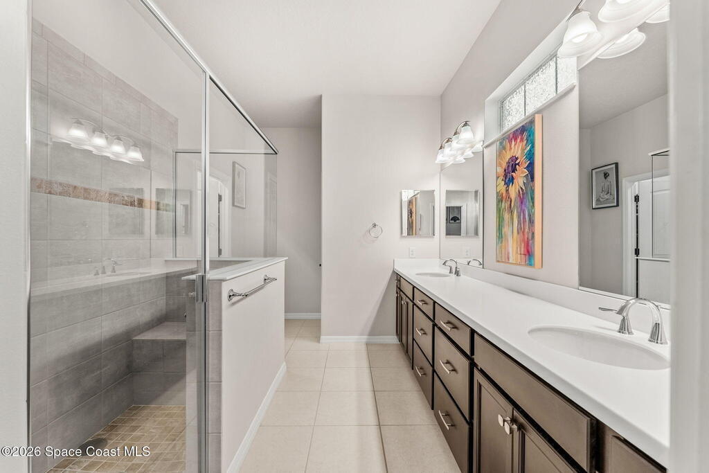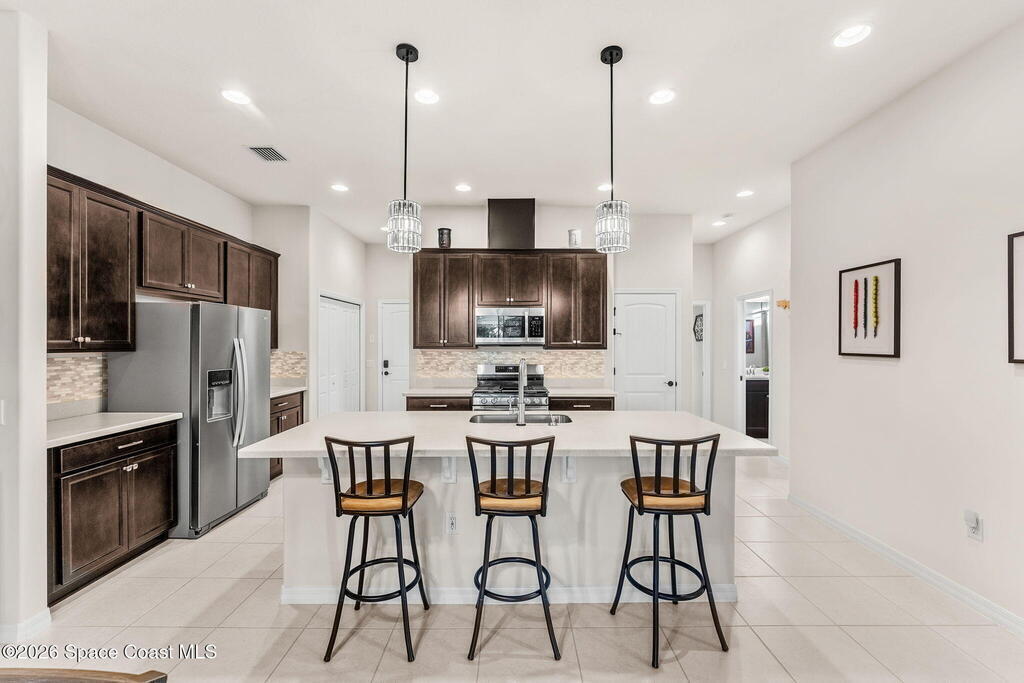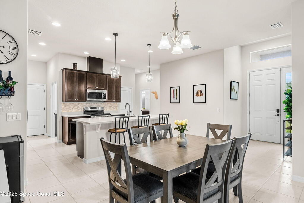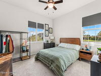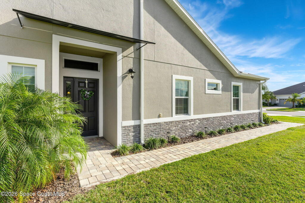 Live the ultimate carefree lifestyle in Viera, Forida in this stylish end-unit, single-story townhome on one of THE BEST LOTS in Avalonia, a rare .21-ACRE Lot! Enjoy privacy with side green space and preserve views across the street. Built in 2023 w/block construction, all windows and the front door are impact-rated. This Monterey II floor plan has 3 bedrooms, 2 baths, 2-car garage with epoxy floors, enhanced with beautiful upgrades: 18'' tile floors, wood cabinetry, quartz countertops, a large island w/pendant lighting, stainless steel appliances, and a custom accent wall. Spacious primary suite features a huge walk-in closet w/custom organizers, dual-sink vanity, and tiled shower. Screened porch overlooks the lake. HOA covers exterior maintenance, roof replacement, lawn care. Enjoy Addison Village Club amenities: pools, basketball, tennis, pickleball- just a bike ride away. Top schools! Short drive to the Beach (20 min), Northrop Grumman, L3Harris, KSC, Blue Origin and more!