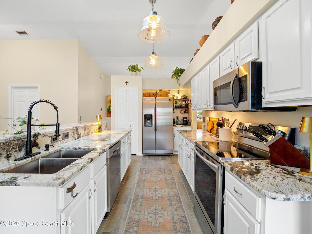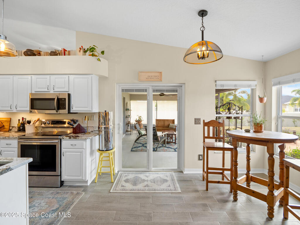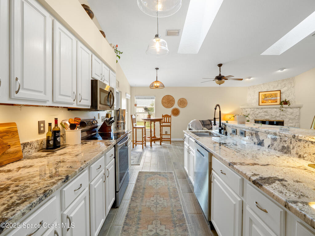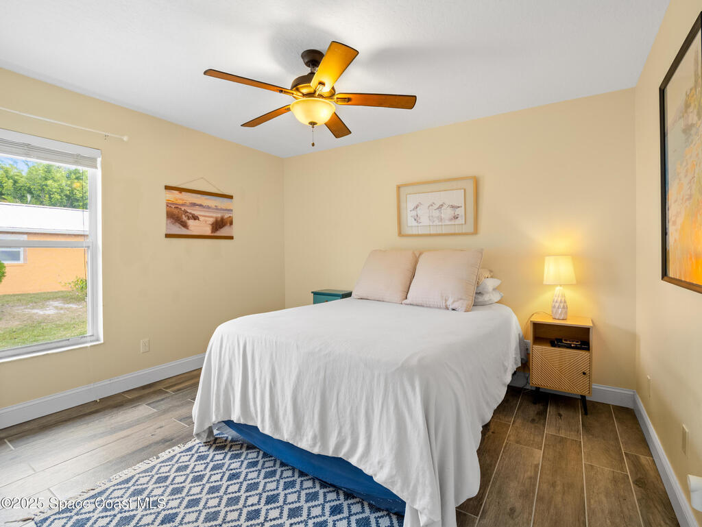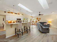 PRICE IMPROVEMENT Well-maintained West Melbourne CBS block home on an extended 0.37-acre fully fenced lot. Lush Florida native landscaping offers beauty and room to grow. This home features 3 bedrooms and two living spaces, one with a wood-burning fireplace. The kitchen offers quartz countertops, bar seating, solid wood cabinetry, and stainless steel appliances. Desirable split floor plan with a spacious primary suite including a walk-in closet. Escape the day with your ensuite bath with dual sinks, fully tiled walk-in shower, and separate soaking tub. Weatherproof vinyl flooring throughout--NO carpet. Enjoy morning coffee on the screened-in porch. ROOF 2023; HVAC 2024. Conveniently located just 5 minutes to Hammock Landing and I-95, 15 minutes to area beaches, and 25 minutes to Patrick Space Force Base. Schedule your showing today!