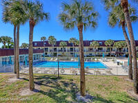 Welcome to Paradise! Living up to it's moniker, this gorgeous two bedroom, two and a half bath condo is tastefully updated and just a two minute walk to Paradise Beach (aka the local's beach). Featuring an updated kitchen with LED lighting, quartz countertops, white cabinets, tile back splash & floors. impact rated windows and brand new a/c system, new interior paint, slider blinds, plantation shutters, and plenty of storage space throughout. Both bedrooms are spacious, with private full baths & walk-in shower in master suite. Enjoy sunshine, surfing, & great rocket launch viewing, walk to restaurants, and shopping. Sip your coffee in the morning on your private porch overlooking the beautifully maintained pool. From tennis courts, sauna and a shuffleboard court, activities abound. Offered turn-key furnished, bring your toothbrush and immediately begin to enjoy all that Florida beach life has to offer.