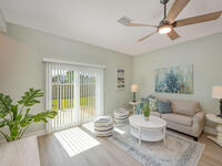 TOWNHOUSE NEAR MARINA! End Unit! Beautiful 2 BD / 2.5 BA designed in an open plan combo with living/dining room and galley kitchen, ceiling fan, impact windows, and wood-like vinyl flooring throughout. Dual cooling/heating AC system. Kitchen has an eat-in dining bar ideal for bar stool sitting for eating and entertaining. All new Whirlpool appliances and plenty of cabinet storage. Added features include, pull out spice rack, lid rack, and trash container. Split Bedrooms on the second level. Spacious Master bedroom has sliding glass doors, closets, own bathroom with beautiful tile flooring, walk-in shower and 2 vanity sinks. Second bathroom has tub/shower and 1 vanity sink. Plenty of natural light, fenced back paver stone patio with electric awning to keep cool and added privacy. 1 car garage with paver stone driveway for extra parking. Electric car charging station in garage.