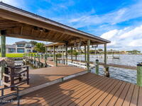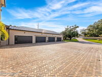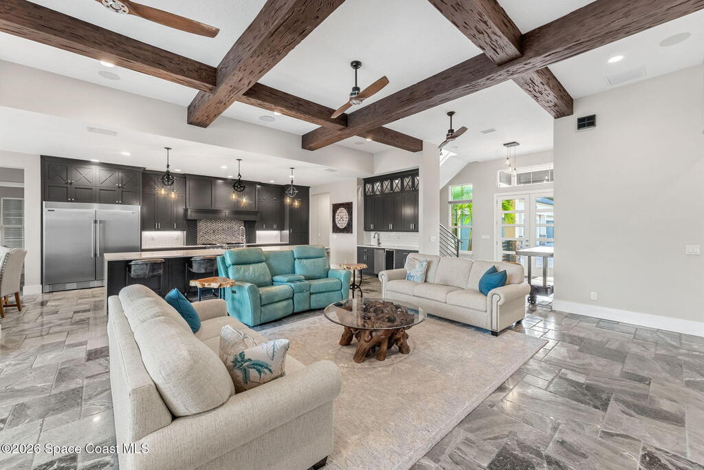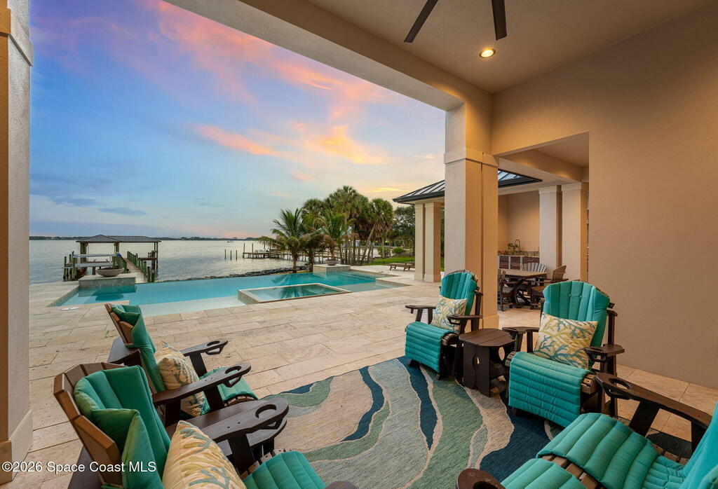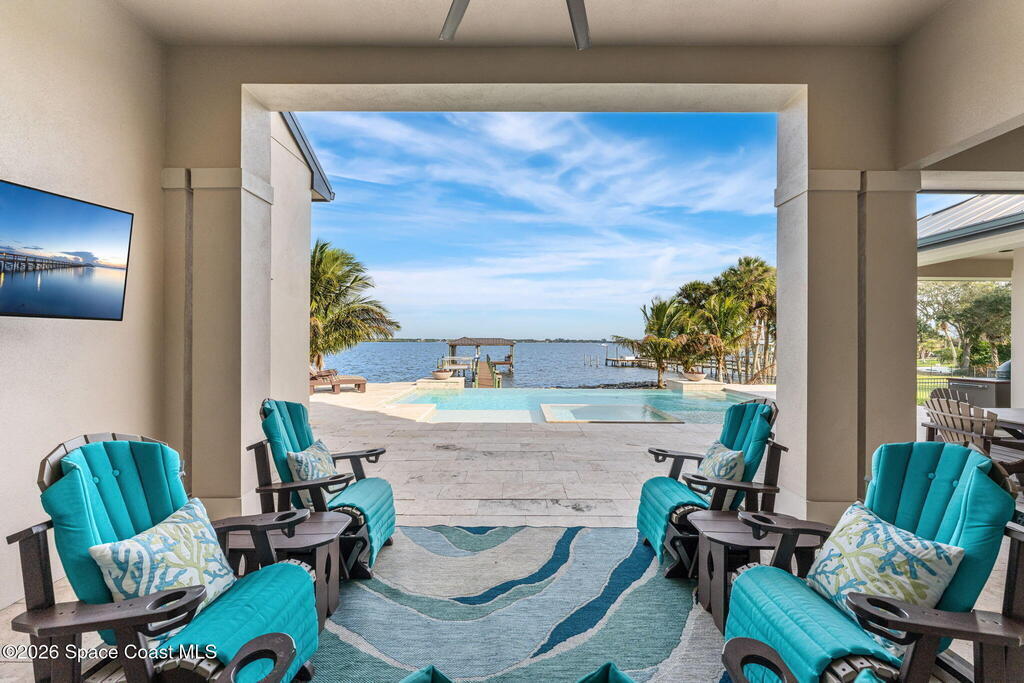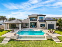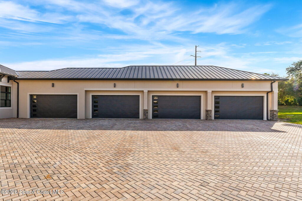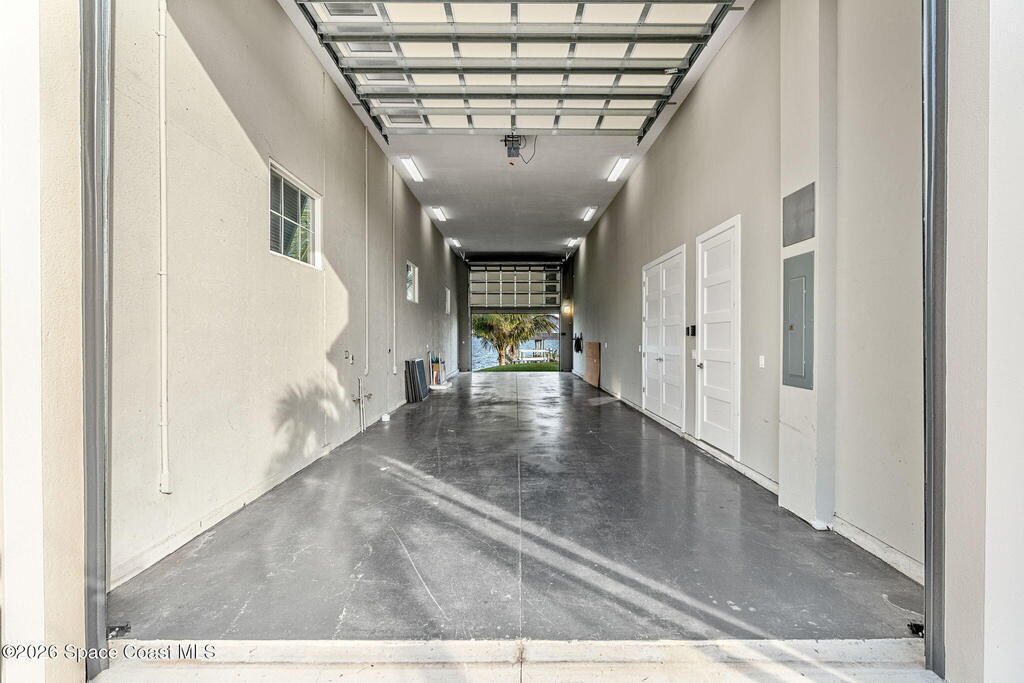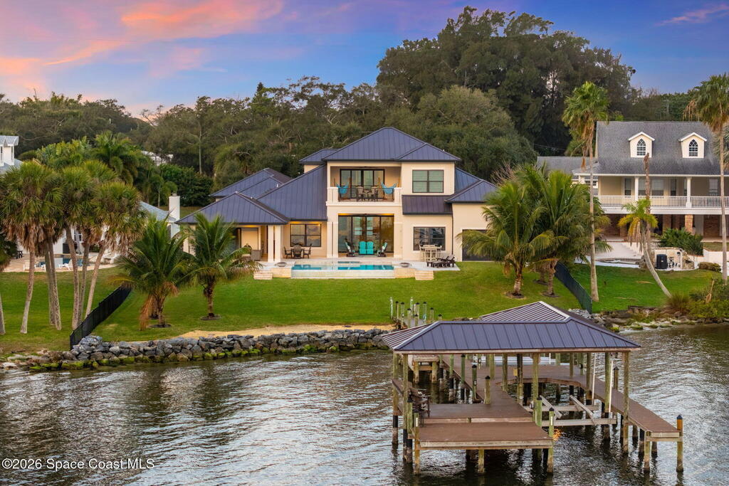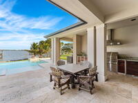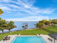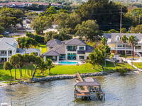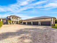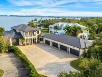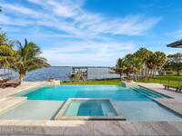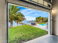 The ultimate private classic car showroom and motorcoach retreat. Stunning custom riverfront home w/ 8-car garage plus 10, 000 lb tandem lift for your curated vehicle collection, additional high-clearance, 55 ft RV/boat garage w/ full hookups. A mariner's paradise w/ 110 ft open water frontage, a granite rock shoreline, and direct views of the intracoastal river. Custom dock w/ 2 lifts to accommodate up to a 30 ft boat with shore power. Enhanced solid poured concrete exterior, freshly painted and sealed, 5 bed 4.5 bath home w/ infinity edge saltwater pool and built-in spa, summer kitchen w/ custom Kalamazoo cabinetry and marine grade stainless steel grille. Impact sliding glass pocket doors w/ expansive river views, custom imported marble floors. Primary suite w/ custom walk-in steam shower and a freestanding soaker tub, and a massive walk-in closet leading to the laundry room. Chef's kitchen w/ 15 ft quartz island w/ waterfall edges, but the hidden butler's pantry steals the show.
