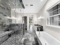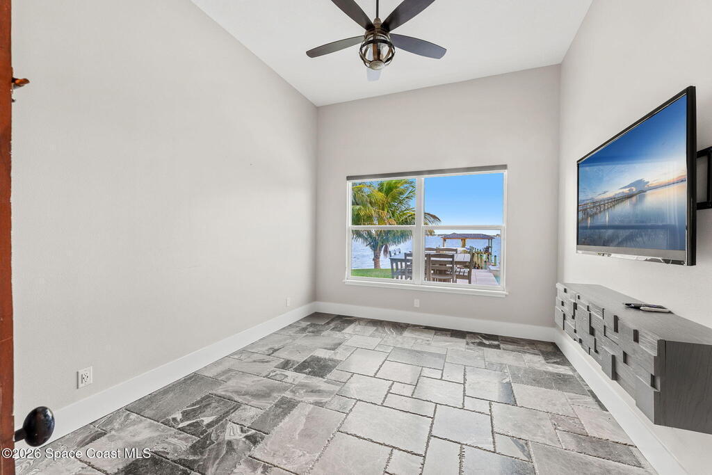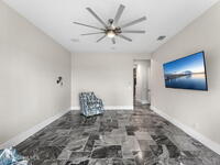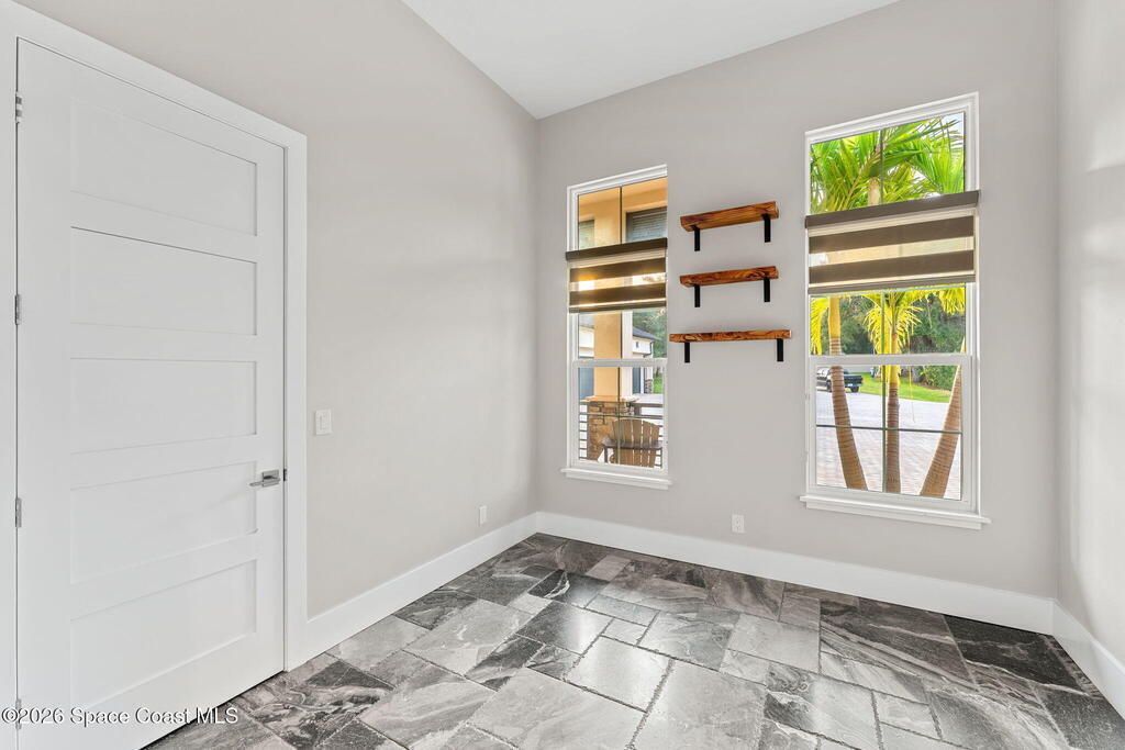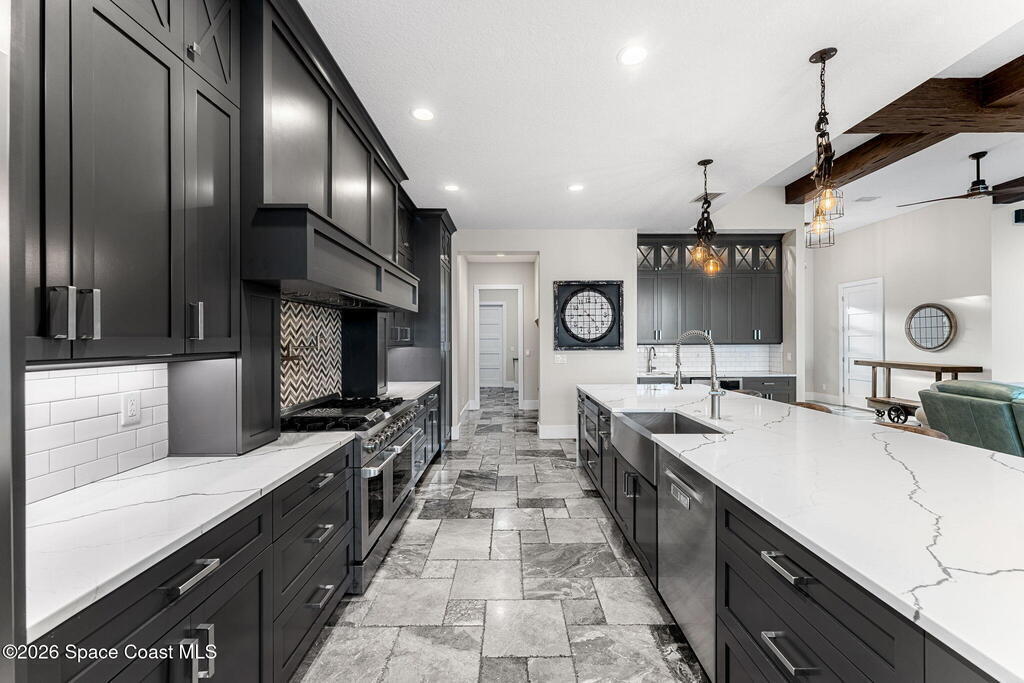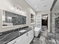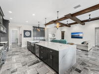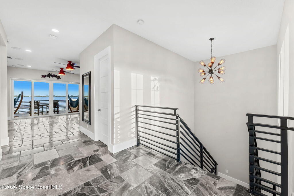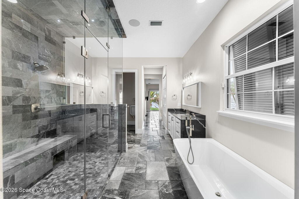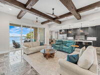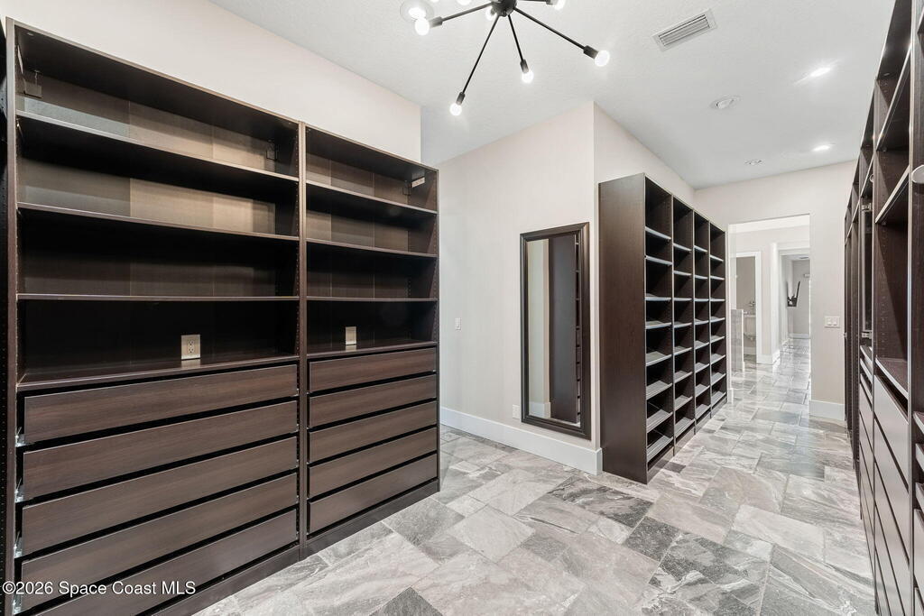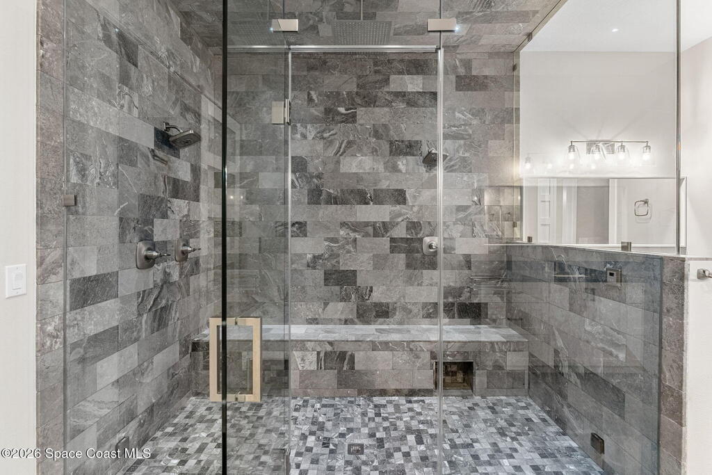 The ultimate private classic car showroom and motorcoach retreat. Stunning custom riverfront home w/ 8-car garage plus 10, 000 lb tandem lift for your curated vehicle collection, additional high-clearance, 55 ft RV/boat garage w/ full hookups. A mariner's paradise w/ 110 ft open water frontage, a granite rock shoreline, and direct views of the intracoastal river. Custom dock w/ 2 lifts to accommodate up to a 30 ft boat with shore power. Enhanced solid poured concrete exterior, freshly painted and sealed, 5 bed 4.5 bath home w/ infinity edge saltwater pool and built-in spa, summer kitchen w/ custom Kalamazoo cabinetry and marine grade stainless steel grille. Impact sliding glass pocket doors w/ expansive river views, custom imported marble floors. Primary suite w/ custom walk-in steam shower and a freestanding soaker tub, and a massive walk-in closet leading to the laundry room. Chef's kitchen w/ 15 ft quartz island w/ waterfall edges, but the hidden butler's pantry steals the show.