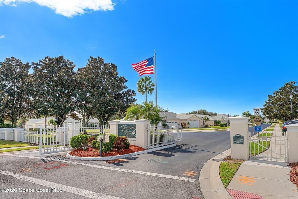 This 3-bedroom (possible 4 bedroom), 3-bath townhome is situated on a waterfront lot in beautiful Magnolia Pointe, a gated and low-maintenance community! The main floor has an open floor plan, soaring ceilings and consists of two bedrooms (including the primary suite) and two baths, kitchen with new stove, microwave/convection oven and dishwasher, dining room, great room and a tiled and screened porch which looks over the waterfront providing peaceful vistas. Upstairs is perfect for guests or family members and includes a bedroom, bath and large loft, which can be used as a 4th bedroom, office, exercise room, game room ... views of the waterfront can be seen from the loft area. A total of 2, 088 sq. ft. under air! In addition, an indoor laundry room (washer and dryer included) lead to the two-car garage. The $375 per month fee includes: exterior painting, roof repairs/replacement, lawn service, irrigation, exterior insurance, reserve funds and more. Near shops and restaurants.