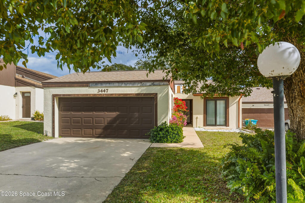 Charming 2 bedroom, 2 bathroom, 2 car garage patio home in Quail Ridge. Located directly in front of the community pool and only 1 mile to Wickham Park. The open floor plan has had all of the big ticket items replaced to include new interior doors, fixtures and wood laminate flooring in bedrooms + impact windows and exterior doors in 2020. HVAC and water heater 2023. Roof 2025.