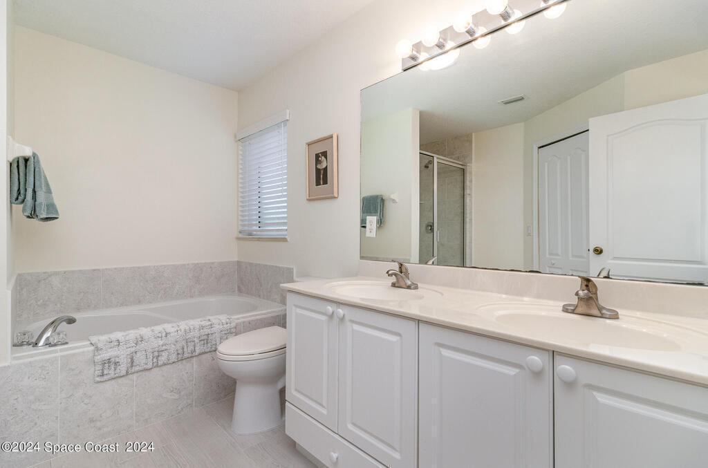 Discover this 4-bedroom / 2.5 baths, home constructed in 2002 situated in the vibrant Suntree neighborhood, just across from the prestigious Suntree Country Club. This property is zoned for A+ rated schools. The primary bedroom is located on the 1st floor with the remaining 3 bedrooms upstairs. The residence offers lofty ceilings in the main living space and comes complete with a whole-home generator and impact-resistant windows. This home has been carefully maintained and upgraded to ensure a secure and safe environment for your family.