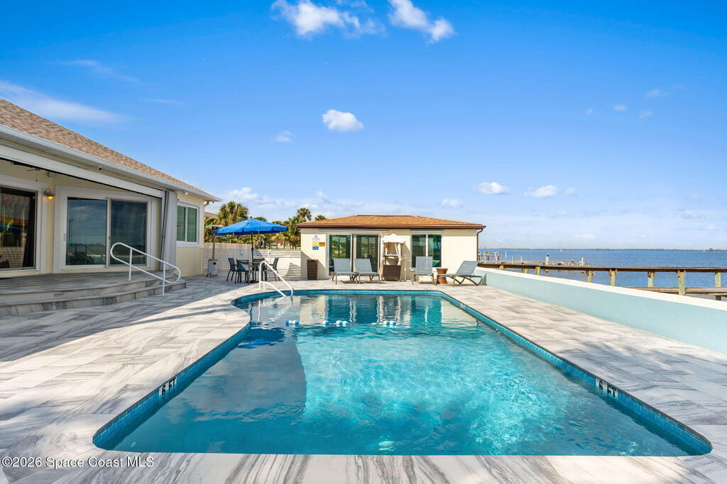 WATERFRONT, PRIVATE POOL, DOCK, UPDATED-TURN KEY This one-of-a-kind opportunity offers luxury waterfront living. The remodeled Single Family House features 5 bedrooms, 2 bathrooms, a 2-car garage, private pool, and a dock directly on the Indian River, with spectacular views from the living areas, primary bedroom, and office.The property also includes a fully remodeled apartment building with 5 units. Four 1-bedroom units and one 2-bedroom unit, all featuring high-end finishes.Long and Short term rentals allowed.No details missed in the top-to-bottom renovation, showcasing high-end finishes and hurricane impact windows throughout. The kitchen is equipped with a premium refrigerator/freezer/wine fridge combination and a uniquely tucked-away oversized walk-in pantry. The primary bathroom boasts a massive spa-like walk-in shower, with the guest bath equally refined. Located near Sebastian Inlet, beaches, airports the Space Center, Port Canaveral, Cocoa Beach, and Disney World.