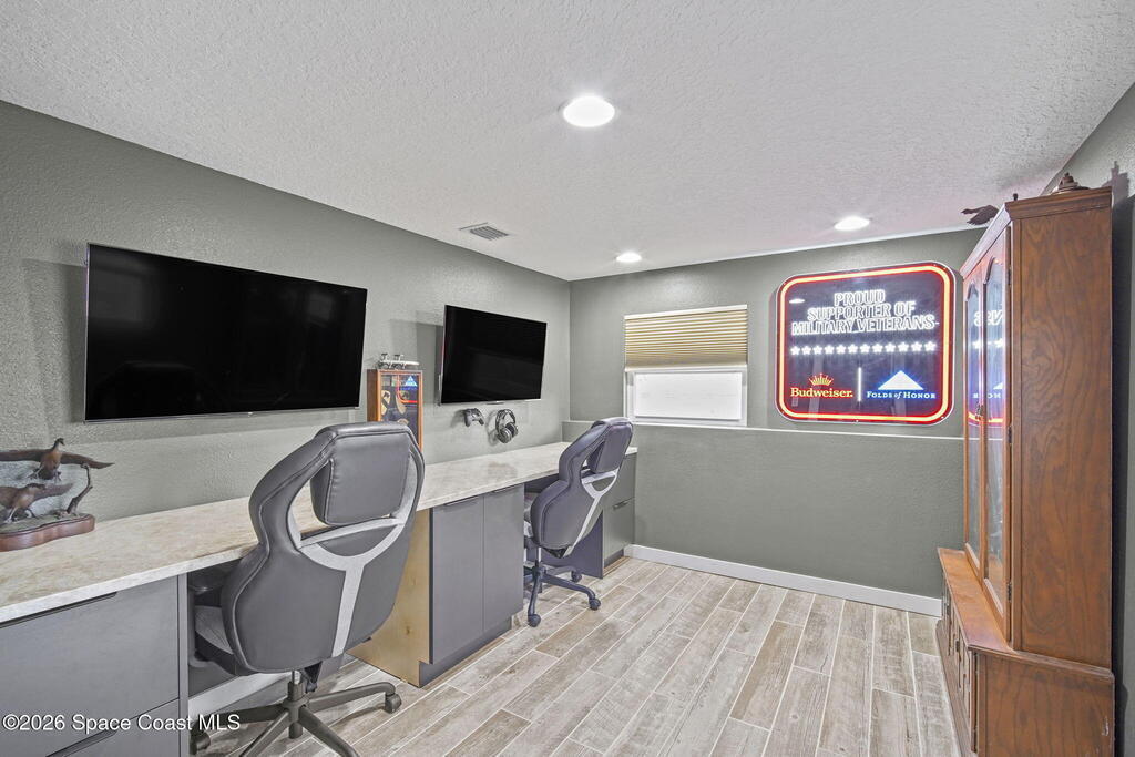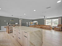 Acreage, modern updates, and a newer 2020 saltwater pool with entertaining spaces.. What more could you ask for? 3-full bedrooms on the main level, plus a built in office and 4th bedroom en suite downstairs, with 3 and a half bathrooms. An amazingly updated kitchen with quartz and granite countertops, stunning kitchen cabinetry, subway tile backsplash, and new appliances. Spacious living room with built-in fireplace accent wall with luxury vinyl plank flooring throughout nearly the whole home. Custom built, saltwater, pool with waterfall and covered lanai for outdoor entertaining. Gas powered whole home generator with 500 gallon buried propane tank. 2021 Roof, 2019 AC, 2021 Water Heater, 2019 Electrical Panel, 2017 Shutters