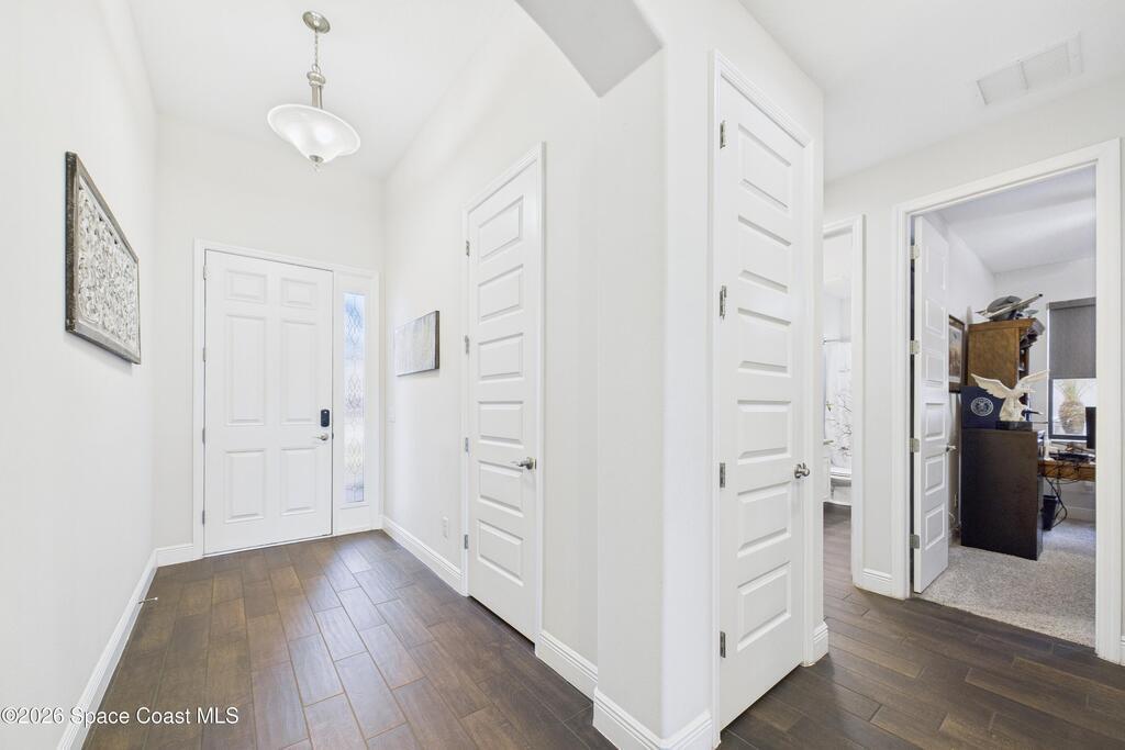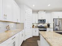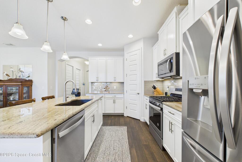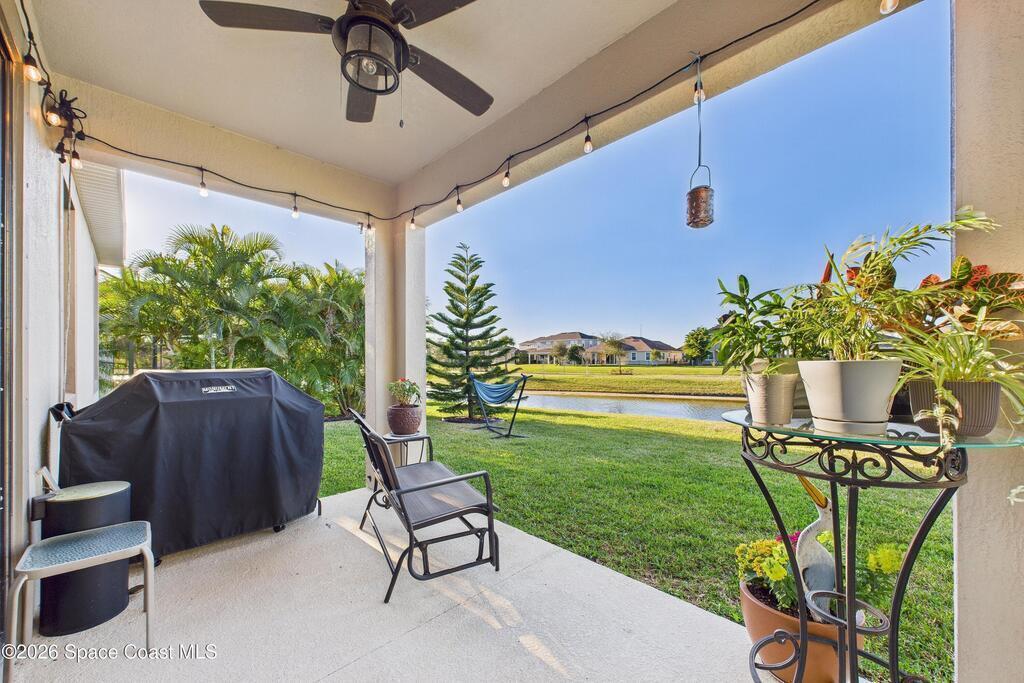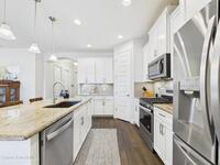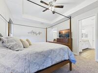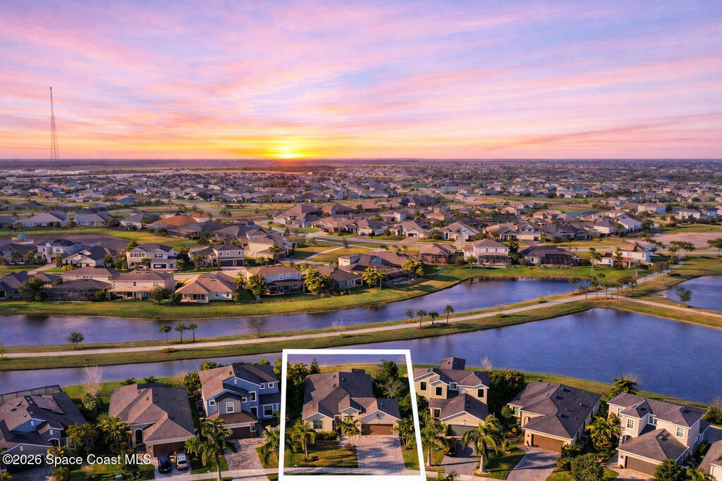 Welcome to this stunning lakefront home, full of $50, 000 in builder UPGRADES, and located in the highly desirable Trasona Cove Community with low HOA! Built in 2019, the Juniper model offers 3 bedrooms, 2.5 bathrooms, and just under 2, 000 square feet of open layout and spacious rooms. As soon as you step foot inside, you are welcomed by an open foyer space with high ceilings complemented by tall interior 8-foot doors, enhancing the home's open feel. Wood-like tile flooring flows throughout the main living areas, with carpeted bedrooms providing comfort and warmth. The kitchen features 42-inch cabinetry, under cabinet lighting, upgraded granite countertops, a tiled backsplash, a lit walk-in pantry, stainless steel appliances, gas stove and oven. Upgraded 51/4-inch baseboards are featured throughout the home. The bright and spacious great room overlooks the tranquil lake and includes plantation shutters, while custom fitted window shades are installed throughout the remainder of the home.