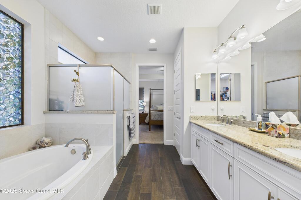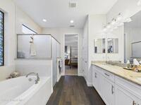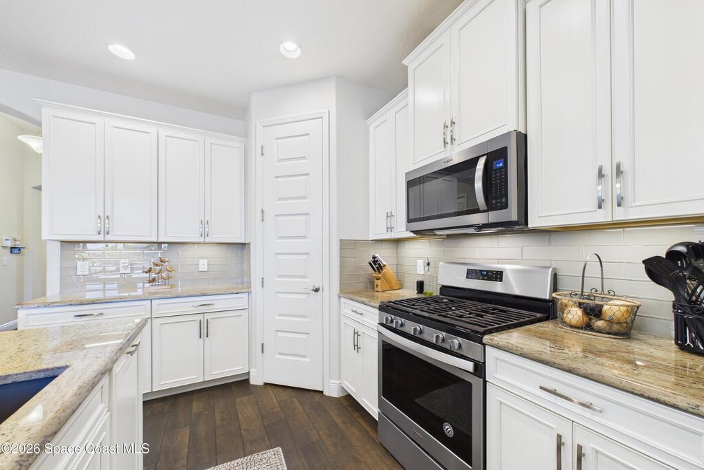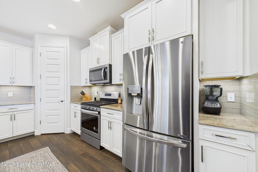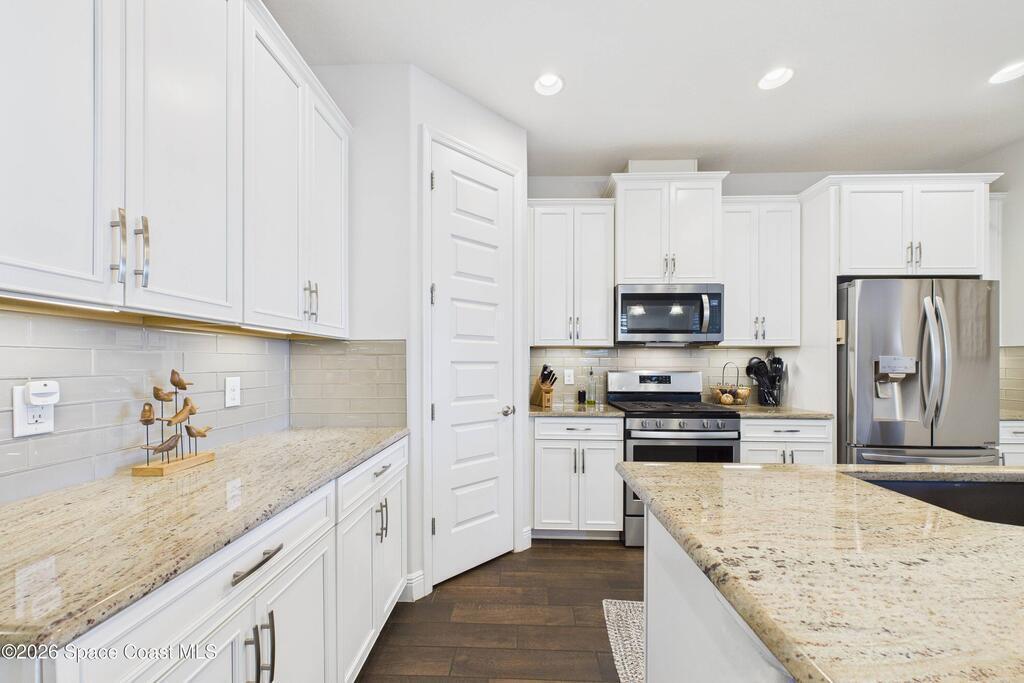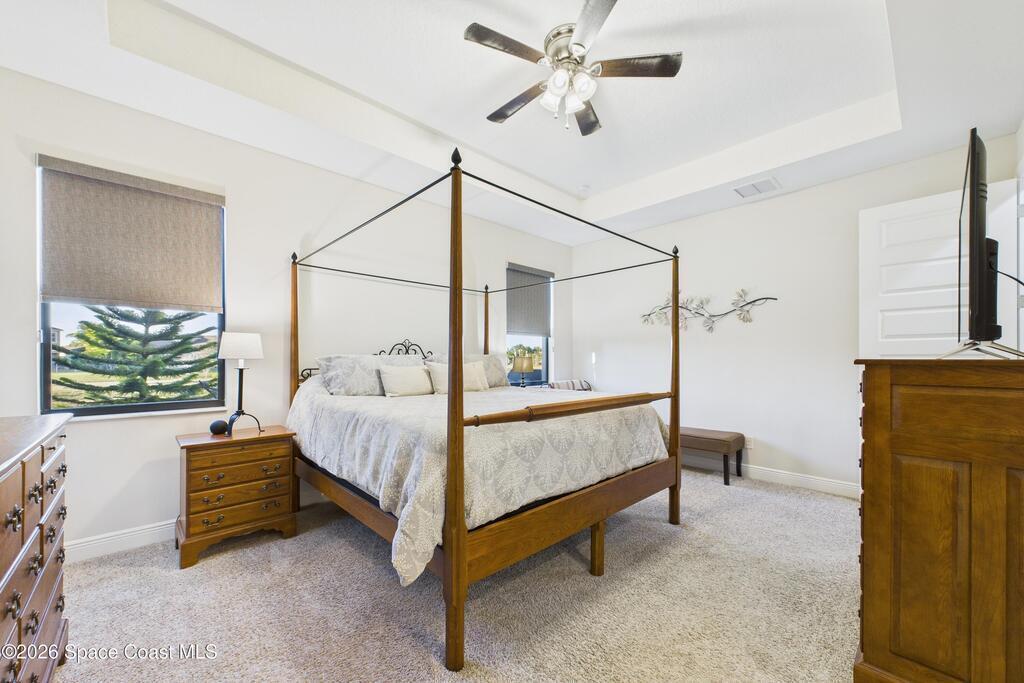 Welcome to this stunning lakefront home, full of $50, 000 in builder UPGRADES, and located in the highly desirable Trasona Cove Community with low HOA! Built in 2019, the Juniper model offers 3 bedrooms, 2.5 bathrooms, and just under 2, 000 square feet of open layout and spacious rooms. As soon as you step foot inside, you are welcomed by an open foyer space with high ceilings complemented by tall interior 8-foot doors, enhancing the home's open feel. Wood-like tile flooring flows throughout the main living areas, with carpeted bedrooms providing comfort and warmth. The kitchen features 42-inch cabinetry, under cabinet lighting, upgraded granite countertops, a tiled backsplash, a lit walk-in pantry, stainless steel appliances, gas stove and oven. Upgraded 51/4-inch baseboards are featured throughout the home. The bright and spacious great room overlooks the tranquil lake and includes plantation shutters, while custom fitted window shades are installed throughout the remainder of the home.