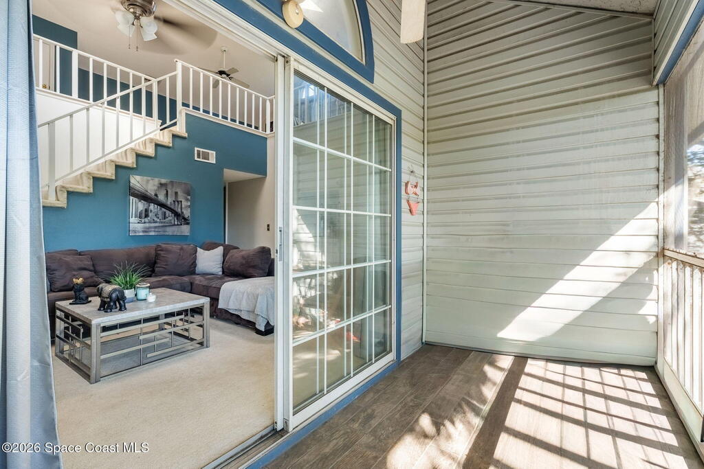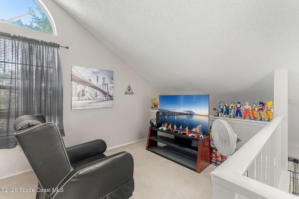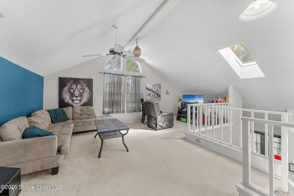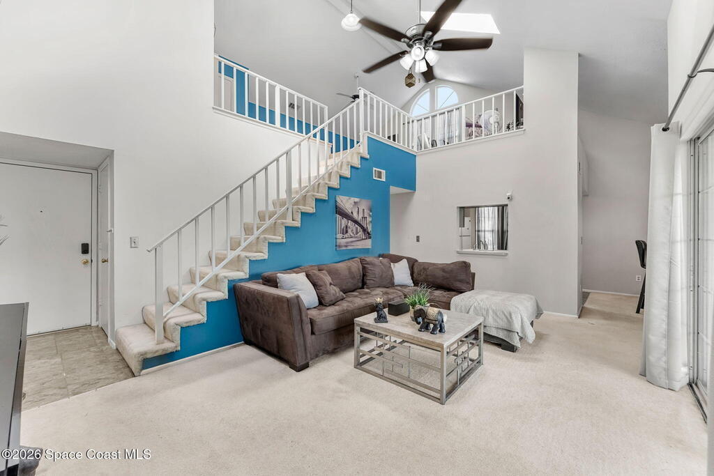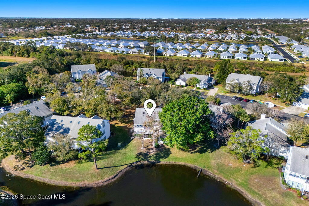 This lakefront two-story condo is ready for its next owner! Location is everything, and this community checks every box. Lake in the Woods offers the perfect balance of peaceful living and convenience in central Melbourne, being tucked away from main roads but allowing easy access to shopping, restaurants, and I-95. This unit features soaring vaulted ceilings with skylights, a large open living space, and screened balcony overlooking the lake. In addition the traditional primary suite, the second bedroom is adjacent to the guest bath for a dual primary setup. Upstairs, there is a massive loft with its own full bathroom - perfect for a game room, office, or 3rd bedroom! The neighborhood is filled with amenities - year-round heated pool, clubhouse, tennis courts. HOA includes water, cable (1400+ channels), streaming, internet, trash, pest control, exterior maintenance, roof replacement, and master insurance, considerably lowering your monthly cost of living! A/C 2025.