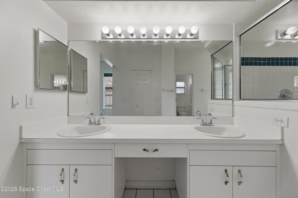 Amazing Gated Community of Sheridan Woods located in highly desired W. Melbourne. You will love the awesome split floor plan design, making entertainment a breeze! Formal living and formal dining with an amazing kitchen w/recess lighting, breakfast bar and an eat-in area that effortlessly flows into the family room with a wood burning fireplace for those cool Florida nights. Spend your evenings unwinding on the huge 26'x13' screened back porch. Master bath is very spacious with double vanities, separate shower and an awesome garden tub. The backyard has a canal for added privacy as well a privacy fenced yard. The sprinkler system is on well for all your landscaping needs, Rain gutters and the hurricane shutters for added peace of mind. ROOF 2023, Hot water heater 2021, A/C is also newer. This lovely home is move-in ready for a new family. Just minutes to I-95, restaurants and shops of all kind. Do not miss this opportunity to make this property your forever home!