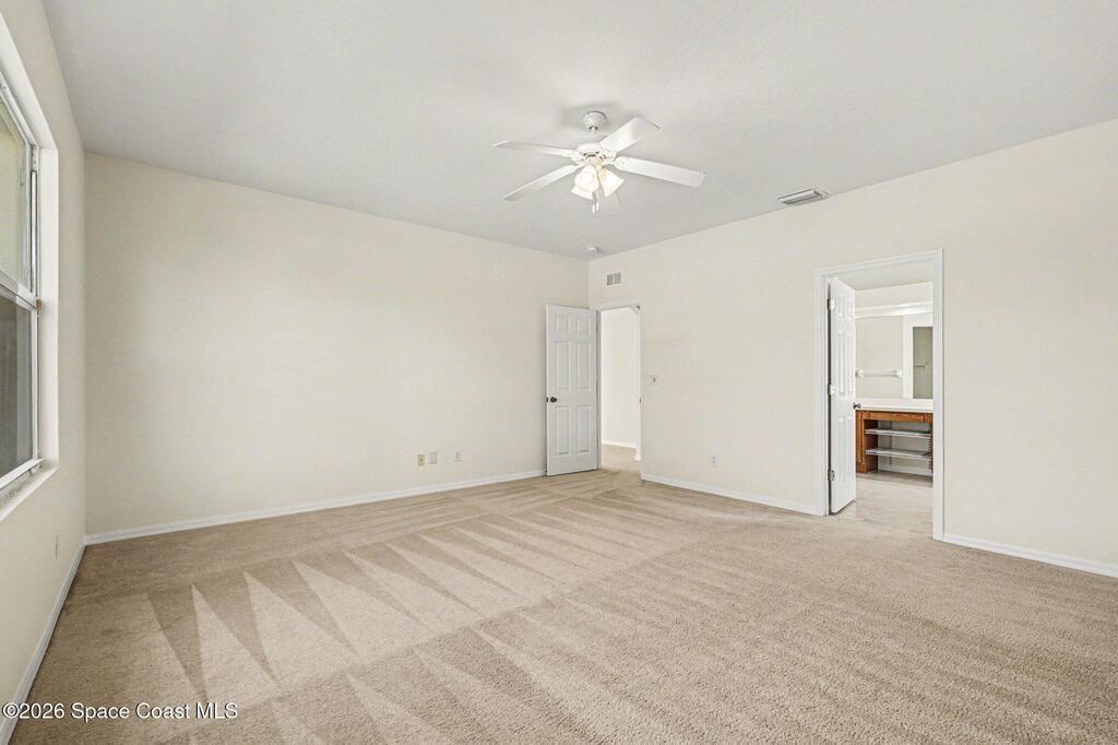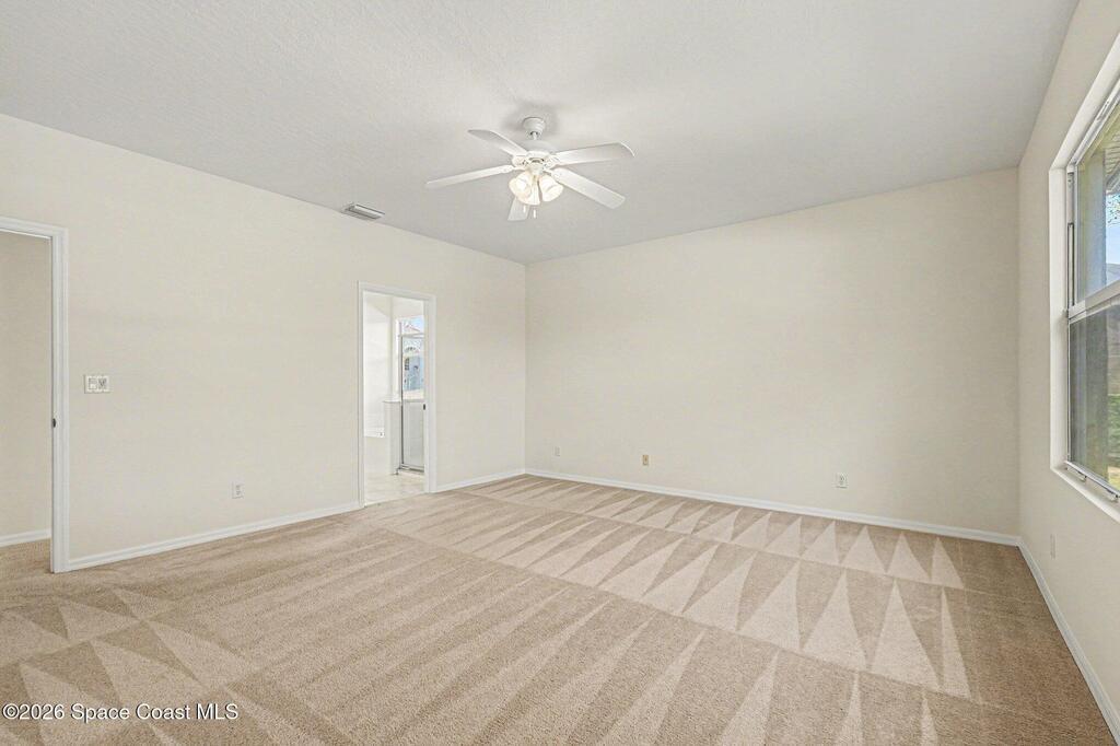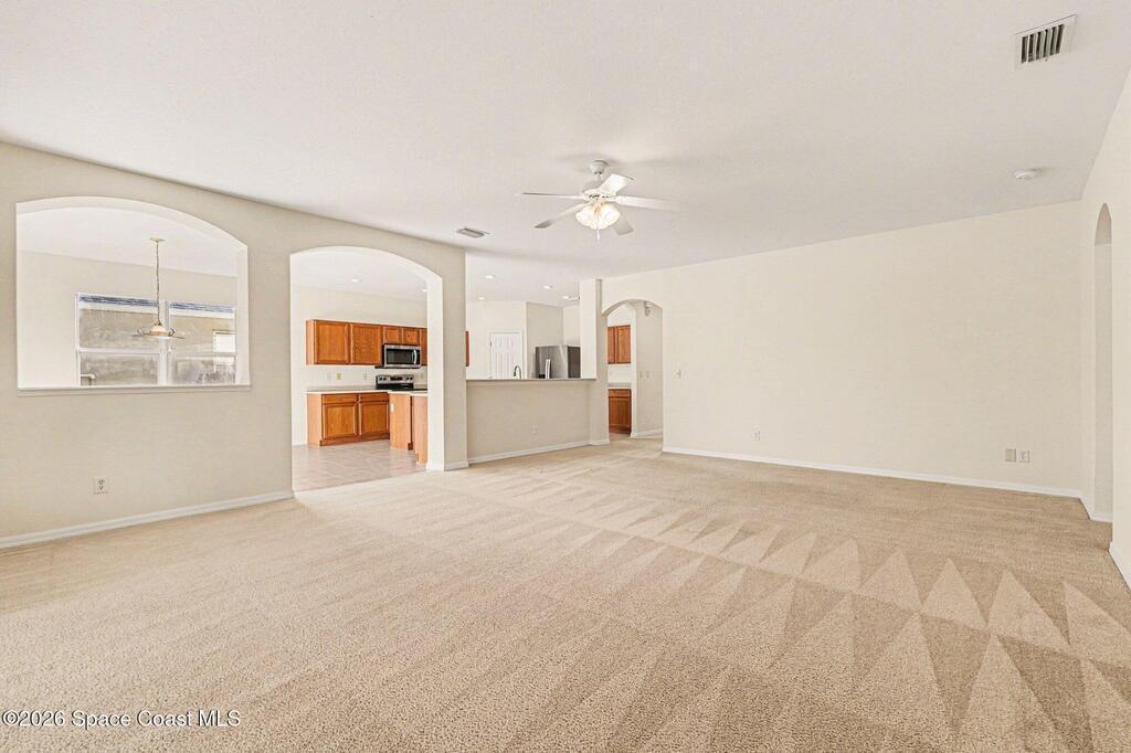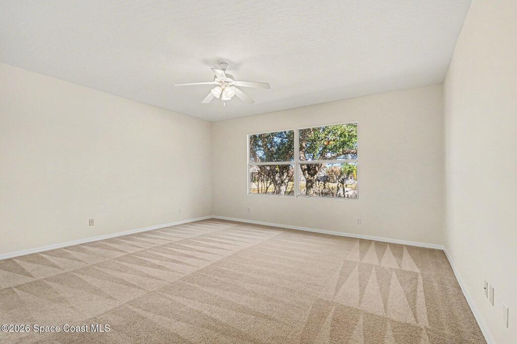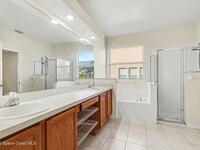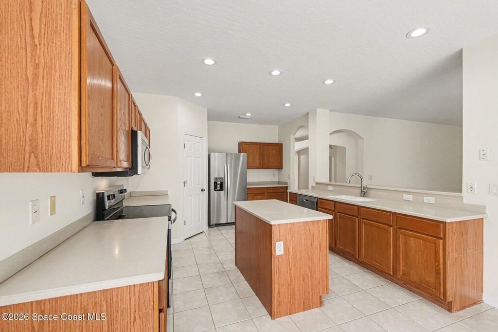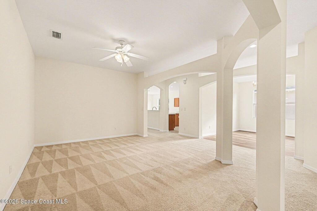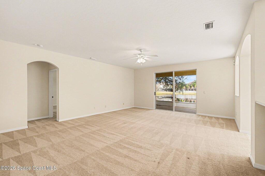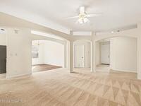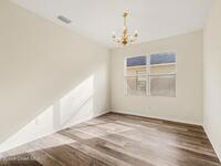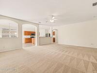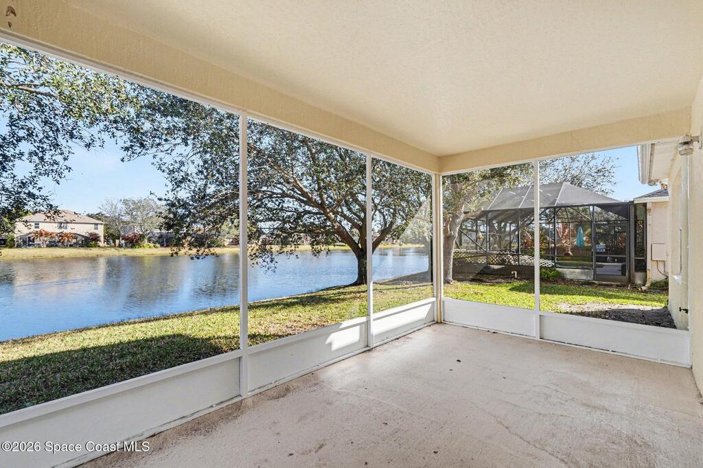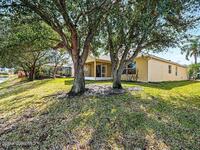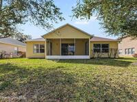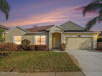 **72 hour kickout clause** Low annual HOA fees and numerous recent updates! Freshly painted inside and out -- including garage walls and floor -- this move-in ready property features new LVP flooring in the formal dining room, ceiling fans in every room, and a convenient inside laundry room. The open family room flows seamlessly from the kitchen, showcasing stainless steel appliances, Corian countertops, oak cabinetry with an island, abundant storage, recessed lighting, and a walk-in pantry. The spacious owner's suite offers dual sinks, a walk-in closet, glass shower, and relaxing Roman tub. Step outside to a large screened and covered lanai overlooking a tranquil neighborhood pond with fresh mulch and beautiful Oak tree. Major systems -- roof, HVAC, and water heater -- are all newer than fall of 2024. This home is located in Sandhill Trace in desirable Grand Haven off the Pineda Extension and perfect for I-95 travel, the new Costco, grocery markets, and other daily conveniences.