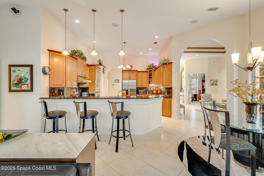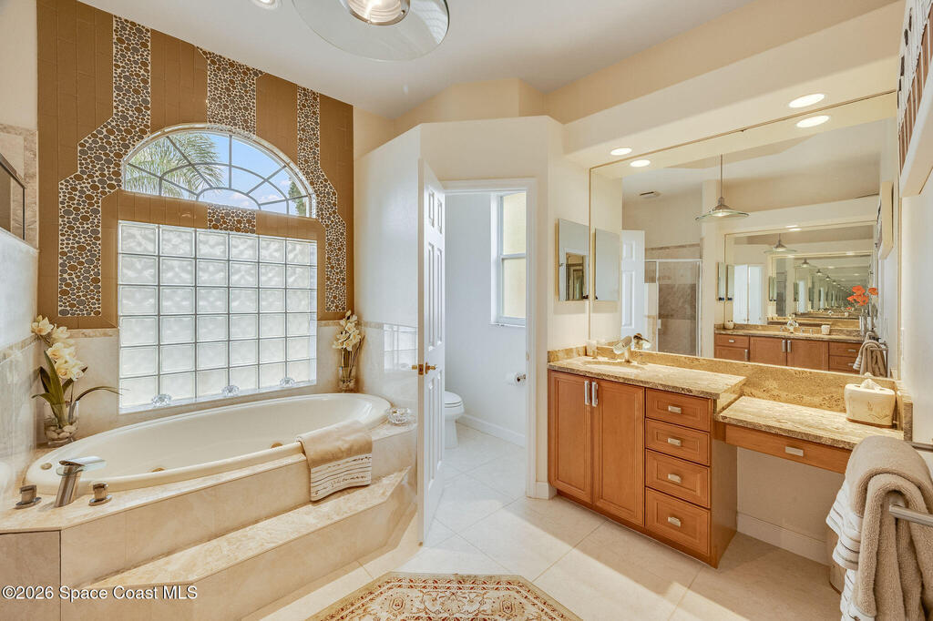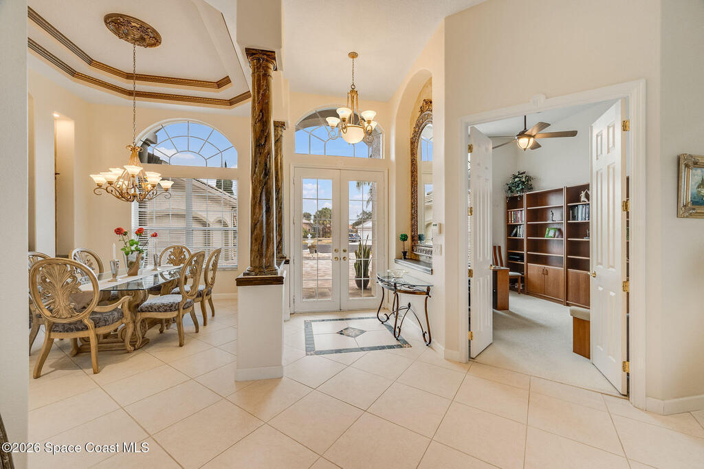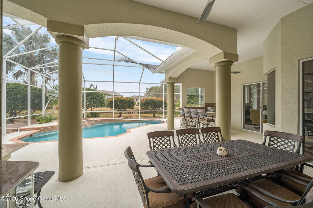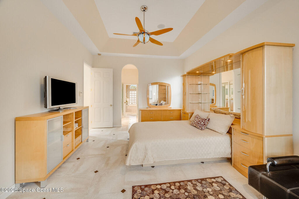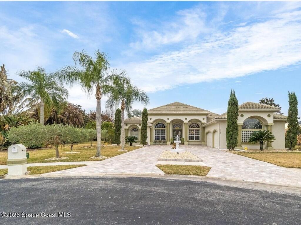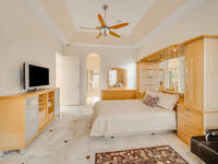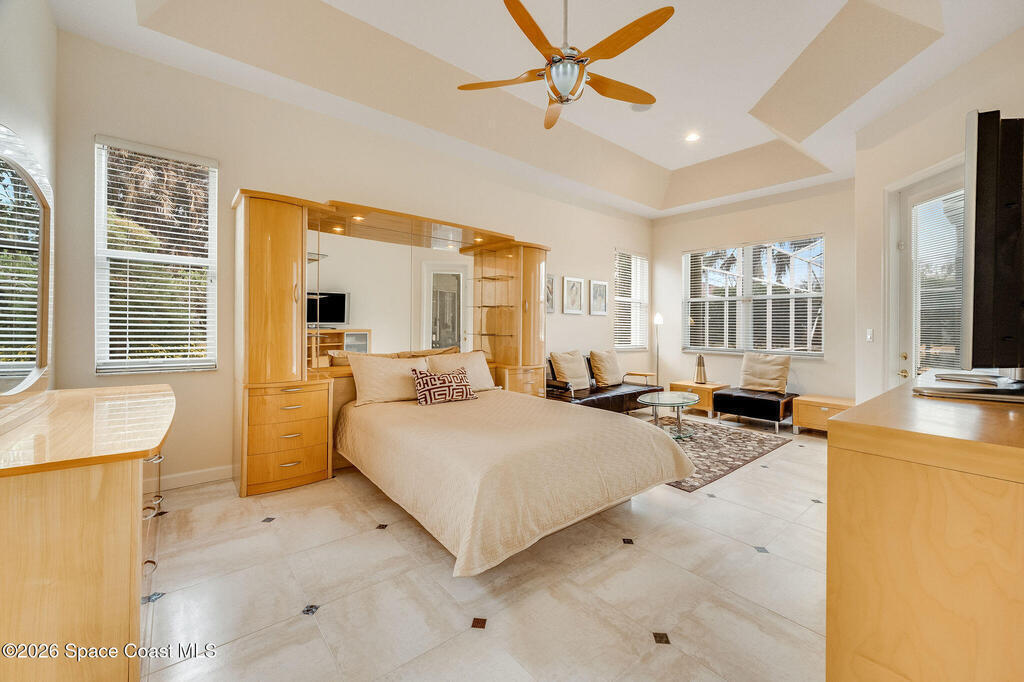 An extraordinary lakefront estate custom-built by Joyal Homes and meticulously maintained by its original smoke-free, pet-free owner. Located in guard-gated Baytree, this 5BR/3.5BA/3CG residence sits on a nearly 1/2-acre pie-shaped cul-de-sac lot with desirable southern exposure. Soaring tray and vaulted ceilings, crown molding, Italian porcelain tile with inlays, and refined finishes throughout. The chef's kitchen offers 42'' maple cabinetry, granite surfaces, stainless steel appliances, a wine cooler, and natural gas. Private in-law suite with separate entrance. Resort-style saltwater pool and spa, Viking summer kitchen, fire pit, and French Riviera-inspired grounds with olive, magnolia, citrus, and cypress trees. Concrete tile roof, oversized side-entry 3-car garage, new accordion shutters, and 2025 pool equipment. Baytree offers premier golf, clubhouse, tennis, and scenic trails.