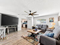 This beautiful corner-lot home in Central Melbourne recently had a complete makeover inside! The corner lot allows plenty of space in your privacy-fenced back yard (w/2 double entry gates) for your boats, RV, dogs & more. Get ready to relax on the back porch in the Hot Tub while you watch TV. The 2021 John Deere mower also conveys! Great location near shopping and dining, the Melbourne International Airport, Golf, minutes to the Beach and more. The open floorplan home has 3 bedrooms, 2 baths, a laundry room off of the kitchen, dining room and an eat-in kitchen. Beautiful bathrooms w/glass doors. The kitchen is roomy with a lot of storage, an eat-in bar and a coffee bar. New impact windows, washer and dryer convey, the extra refrigerator in the laundry room conveys too! There's room for your tools in the 6x10 shed in the back yard. All new vinyl floors, new knock-down ceiling throughout the home.The home has been well maintained and has only had 2 owners! Read more.....