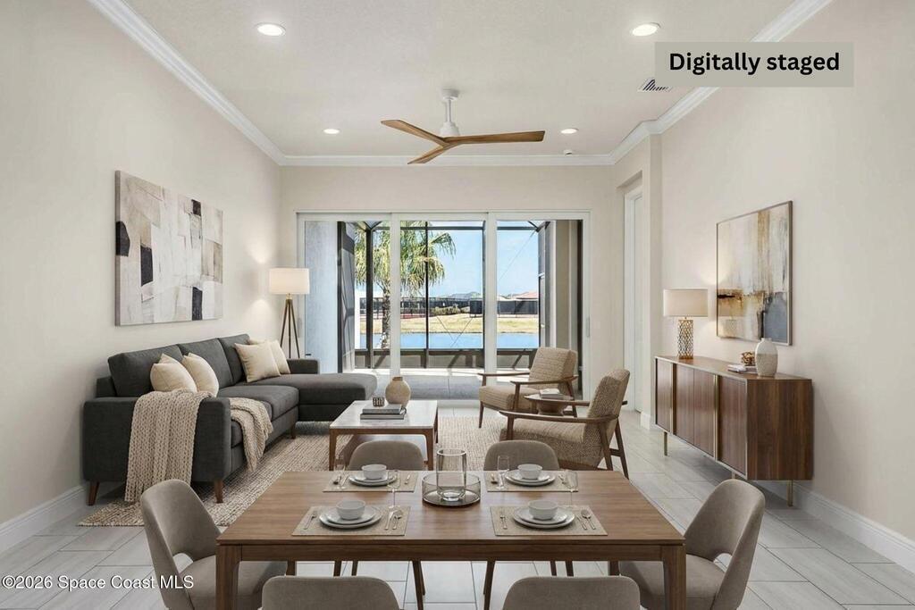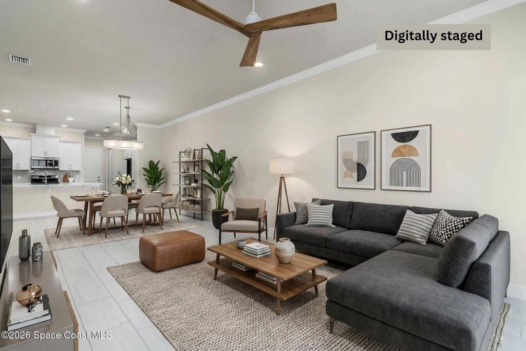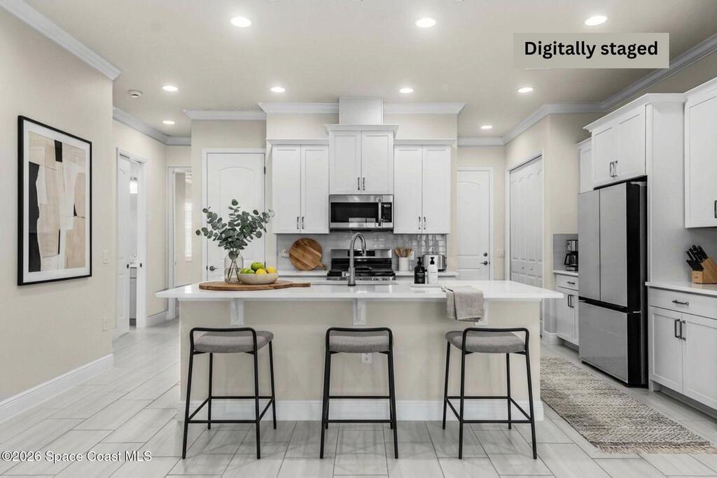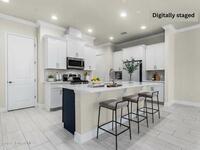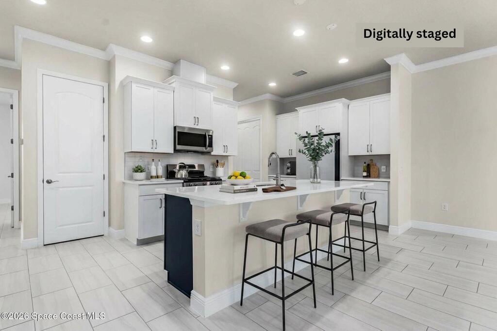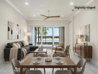 Best value on the market! $50K in upgrades elevate this move-in-ready lakefront home set on a premium pie-shaped lot w/ added privacy & a long driveway that fits multiple cars. All impact windows & tile floors throughout -- even all bdrms -- deliver a clean, cohesive look you'll love from day one. The kitchen features white cabinetry, a bold navy island, quartz surfaces, a sleek counter-depth refrigerator, SS appliances & a gas range w/ griddle pan. The open layout flows effortlessly to the dining area & great room, where serene lake views are beautifully framed by sliding glass doors leading to the lanai & an extended screened patio -- perfect for entertaining or unwinding after a long day. The bright & spacious primary ste offers dual sinks, quartz counters, a large shower & a supersized walk-in closet. Well finished & includes washer & dryer. Resort-style community amenities, A+ schools, 15 min. to the beach, 6 min. to Costco & only 3 min. to Publix. This one truly checks every box!