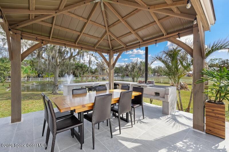 Need some space? Look no further because this one has it all! Available now is this modern home with a country feel. Very conveniently located close to Minton Road and I-95 means you get all the benefits of country living while still being close to all modern conveniences! This 2.5-acre estate boasts amazing outdoor spaces including producing fruit trees, gardens, pool, outdoor kitchen as well as a FULLY stocked pond with a refinished dock and fountain. The entire property is fenced in, and the extra-long driveway is protected by a private gate. The house itself is very spacious split floorplan with 3 bedrooms, 2 bathrooms, and a bonus room. Upon entry to the house, you are greeted by a very nice sized family room with the dining room to the left and the bonus room to the right. The family room leads out into the screened porch overlooking the pool and outdoor kitchen. The entire house has been upgraded with impact windows and doors to complete this one-of-a-kind property. Come see!