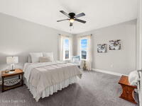 Experience the Pinnacle of Viera Living~Skip the wait for new construction with this impeccably maintained, 3 year old executive estate. Nestled in the heart of West Viera this two-story masterpiece blends sophisticated design with ultimate peace of mind featuring two living spaces, 4 bedrooms, 3.5 baths and spacious split garages. The chef's kitchen is a showstopper, boasting rich navy and white cabinetry, stunning granite countertops, and upgraded appliances. Retreat to an oversized primary suite featuring a ''to-die-for'' custom walk-in closet and spa-like bath w/glass-enclosed shower and dual sinks. Highlights include: Impact glass windows, 8-foot doors, neutral tones, wood-look tile, and custom closets in all bedrooms. Enjoy Outdoor living? An extended paver back patio, added green space distancing nearby homes & an additional side fenced courtyard all offer the perfect space for play, privacy or entertaining with ample room to add your dream pool. Prime Location...(see more..)