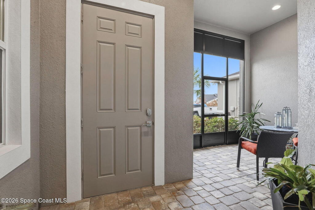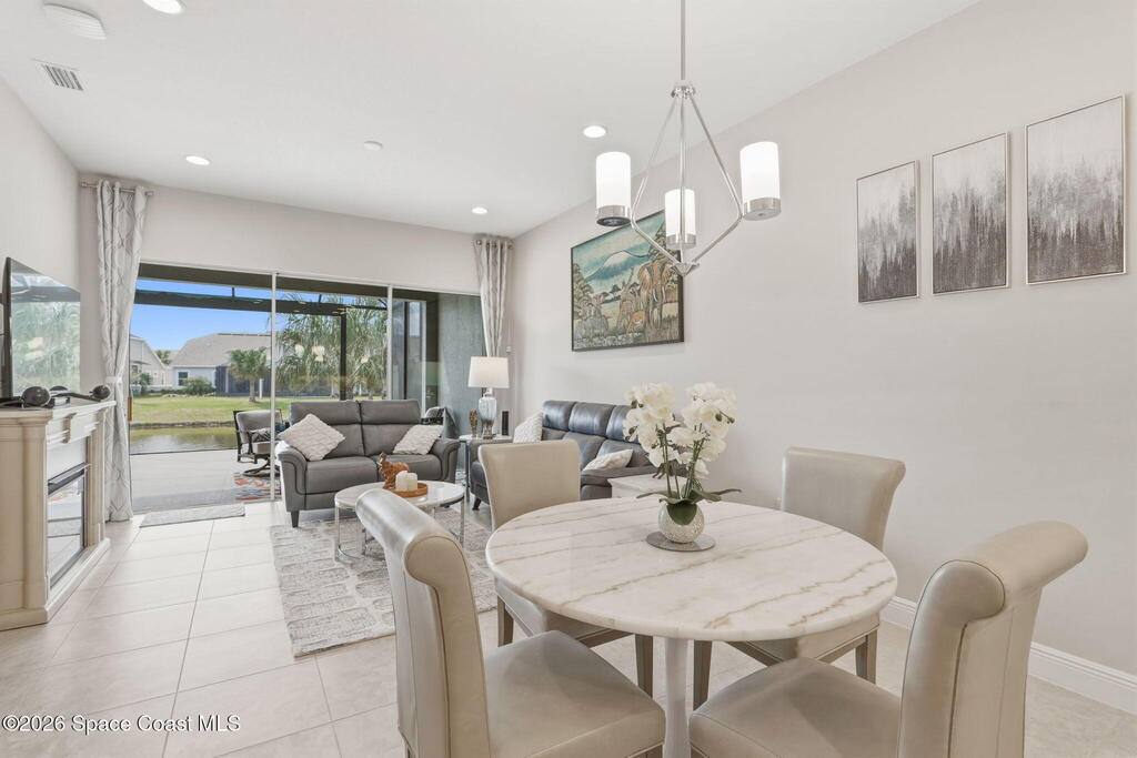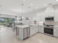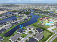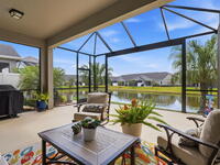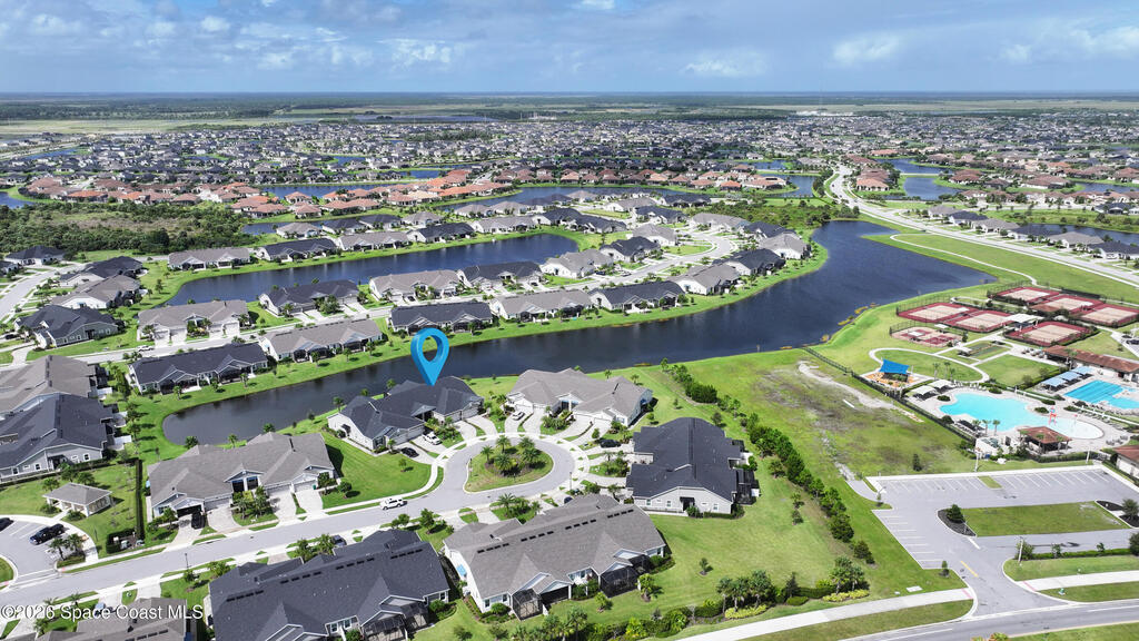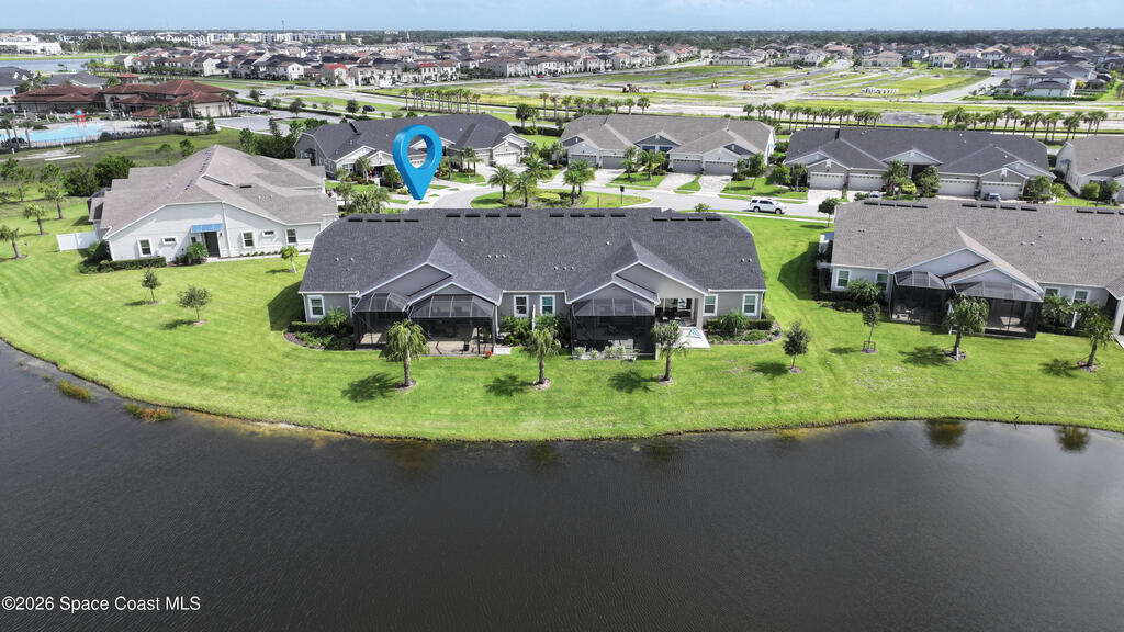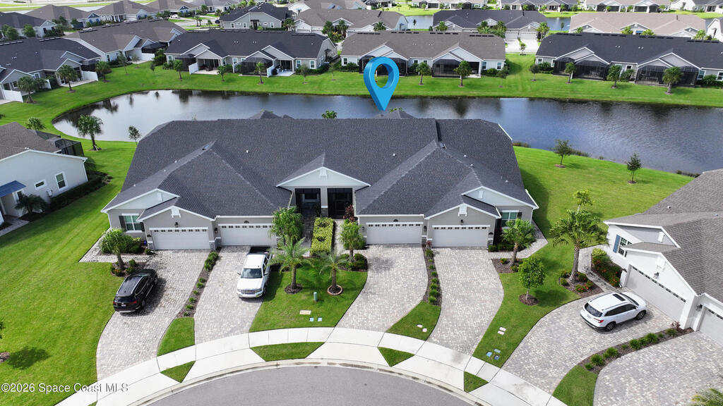 Rarely available lakefront townhome positioned on a private cul-de-sac within the new maintenance-free community of Avalonia. This premium homesite offers exceptional privacy and breathtaking water views from the extended lanai featuring a picture-frame screen enclosure, creating a true indoor-outdoor lifestyle. Inside, soaring 10-foot ceilings, 8-foot doors, and custom wainscoting establish an immediate sense of quality. The chef-inspired kitchen features white shaker cabinetry, high-end quartz countertops, designer backsplash, stainless steel appliances, and a five-burner gas range. Tile flooring flows throughout the main living areas and primary suite. Custom cordless roller shades and impact windows provide both style and peace of mind. The lakefront primary retreat offers dual vanities, a walk-in shower tiled to the ceiling, and a spacious walk-in closet. This home is located on Tethys Ct which has much less traffic than Avalonia Dr. Located the closest to the community mailbox.