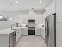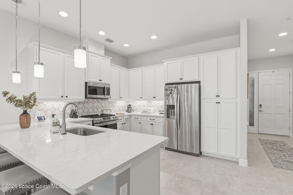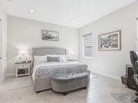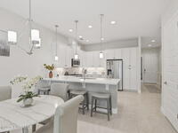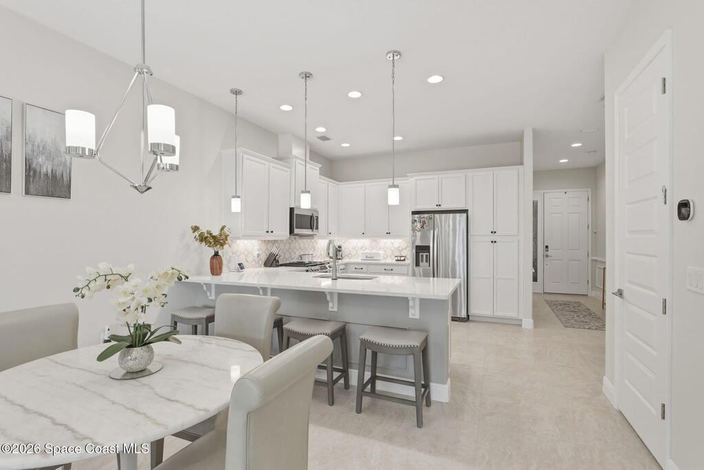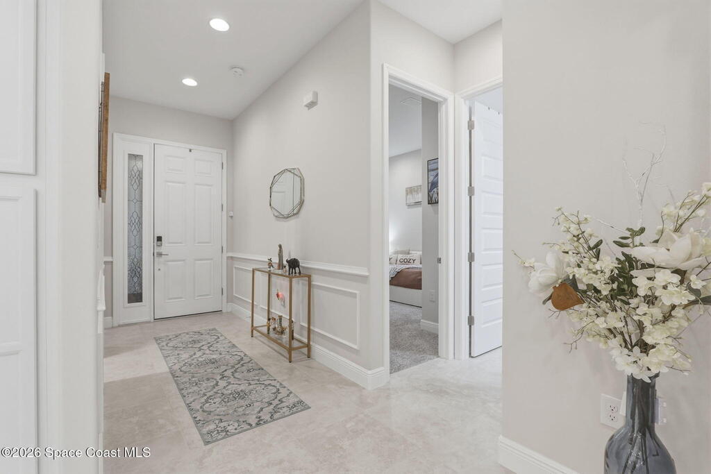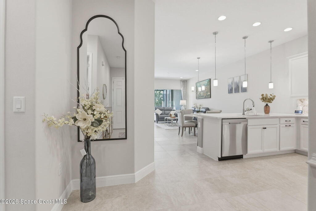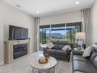Rarely available lakefront townhome positioned on a private cul-de-sac within the new maintenance-free community of Avalonia. This premium homesite offers exceptional privacy and breathtaking water views from the extended lanai featuring a picture-frame screen enclosure, creating a true indoor-outdoor lifestyle. Inside, soaring 10-foot ceilings, 8-foot doors, and custom wainscoting establish an immediate sense of quality. The chef-inspired kitchen features white shaker cabinetry, high-end quartz countertops, designer backsplash, stainless steel appliances, and a five-burner gas range. Tile flooring flows throughout the main living areas and primary suite. Custom cordless roller shades and impact windows provide both style and peace of mind. The lakefront primary retreat offers dual vanities, a walk-in shower tiled to the ceiling, and a spacious walk-in closet. This home is located on Tethys Ct which has much less traffic than Avalonia Dr. Located the closest to the community mailbox.