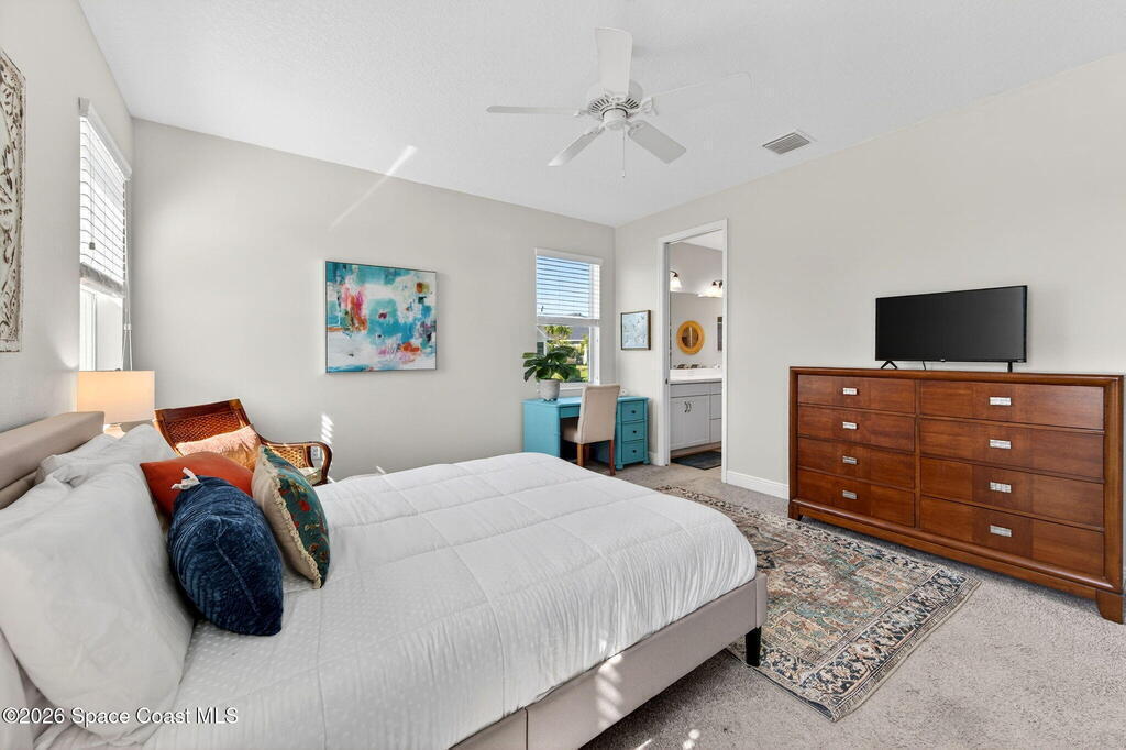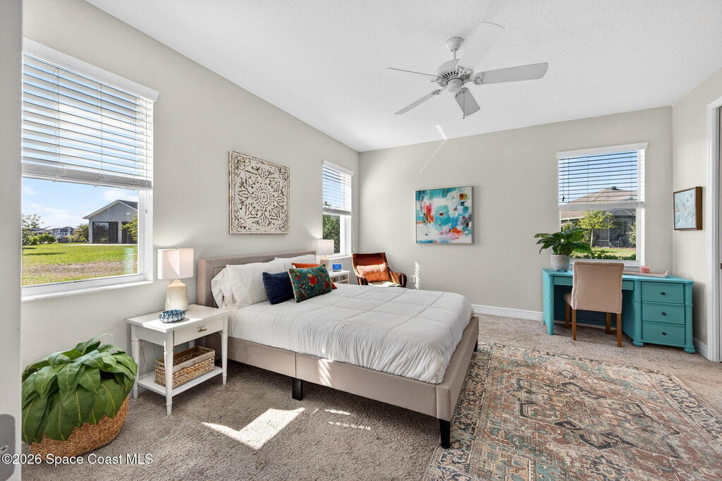 YOU WILL OWN MUCH MORE PROPERTY WHEN YOU BUY this BEAUTIFULLY UPGRADED HOME LOCATED on ONE OF the BIGGEST & LARGEST LOTS in LOREN COVE! This Monterey floor plan offers a HUGE YARD outside & yet a perfect blend of comfort, convenience & modern design inside! YOU will be WOWED by the bright, open layout & split bedrooms w/ spacious primary suite for ultimate relaxation; Dreamy kitchen w/gorgeous quartz countertops, white shaker cabinets, subway tile backsplash & spacious breakfast area, high end finishes & designer upgrades: 18x18 tile in main living areas, sleek stainless steel appliances, 8-foot doors w/elegant trim, HUGE screened lanai with extended paver patio, pull down attic stairs for easy storage access. The HOA covers lawn care, pest control, exterior insurance & access to top-tier amenities: private clubhouse, playground, covered pavilion, and more! Just steps from Addison Village Clubhouse & minutes to shopping, restaurants, churches, parks & I-95. IT'S A LIFESTYLE UPGRADE!