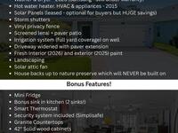 Built in 2015 and beautifully maintained by the original owners, this family-friendly West Melbourne home offers the space and flexibility today's buyers dream of. With 4 full bedrooms plus a bonus room (perfect for a playroom, office, gym, or 5th bedroom) the layout fits every stage of life. One of only 2 in the community with this unique floor plan, elevation, and inviting front porch, it truly stands out. Recent updates include a 2024 roof (Class-A shingles under warranty), 2024 impact-rated garage door, 2025 interior/exterior paint, and 2023 Samsung washer and dryer. Concrete block construction, hurricane panels, no flood zone for lower insurance, full yard irrigation on a well, vinyl privacy fence, and leased solar panels (with buyer option to keep or remove) keep electric bills near-zero. Incredible location in a safe community, close to trails, shopping, dining, and the best that Melbourne offers. Schedule a showing before its gone! Message Sam Boyd with any questions.