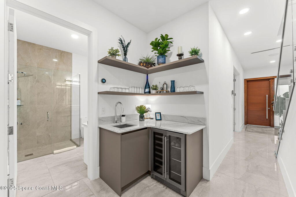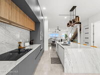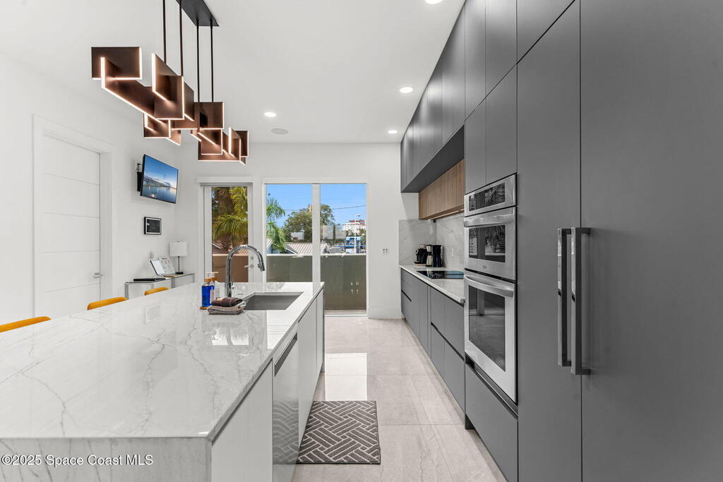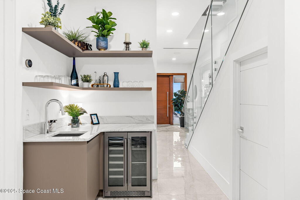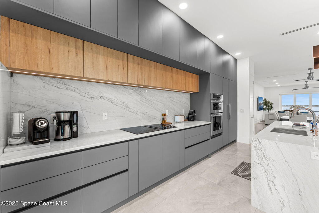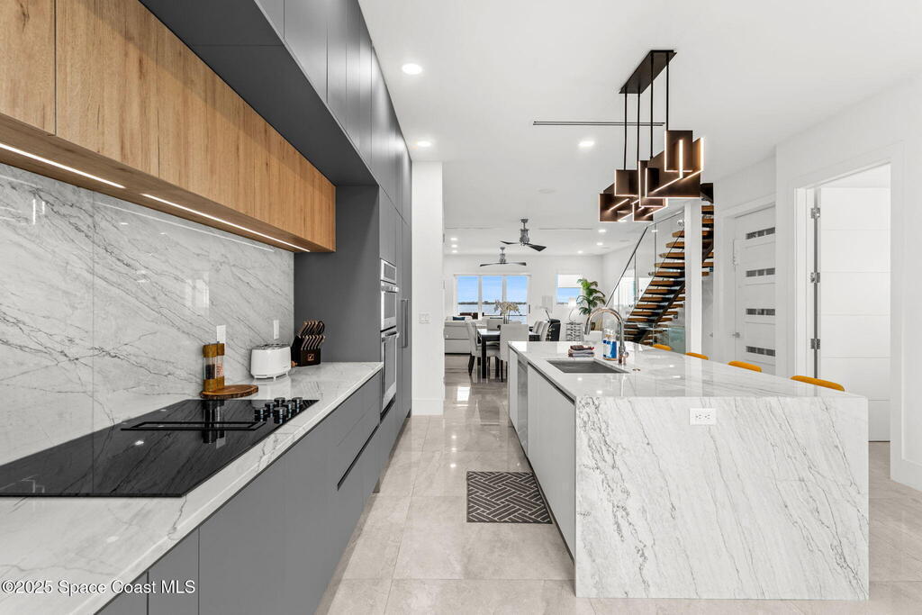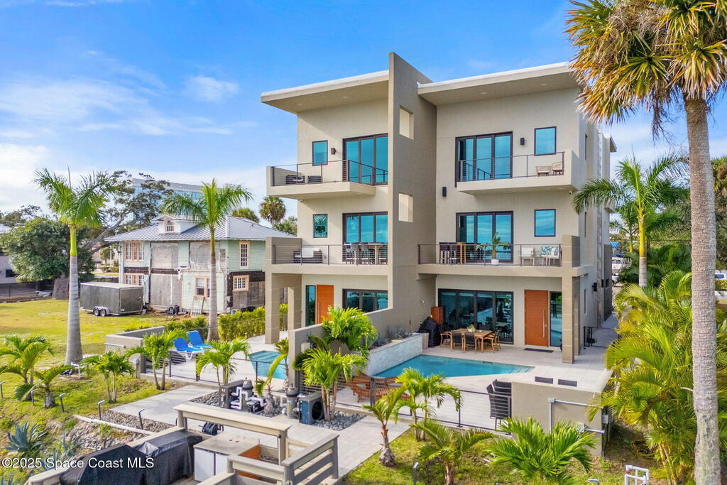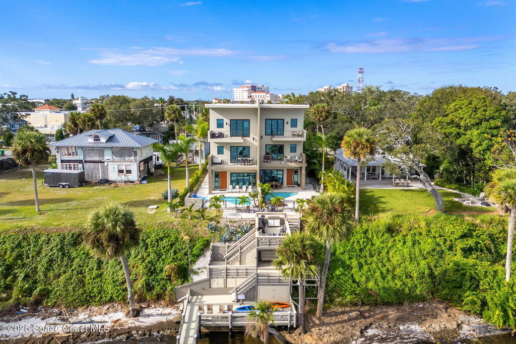Experience a level of craftsmanship rarely seen on the market. Not a single expense has been spared by this international developer--every inch of this home reflects precision, intention, and luxury. Perched 20 feet above sea level and built like a fortress, this 2023 direct-riverfront residence delivers panoramic Indian River views and European-inspired elegance across 2, 936 sq. ft., seamlessly connected by a private elevator to all three levels.Every design element is a statement piece: a sculptural marble-and-oak floating staircase, glass railings, sleek porcelain flooring, and meticulously curated finishes that redefine modern sophistication. The Euro-style kitchen features premium appliances and custom cabinetry designed not just for functionality, but for elevated living and entertaining.Set on a private 0.12-acre riverfront parcel, the estate includes a resort-style pool with waterfall and a 366-ft private dock outfitted with both boat and jet ski lifts.