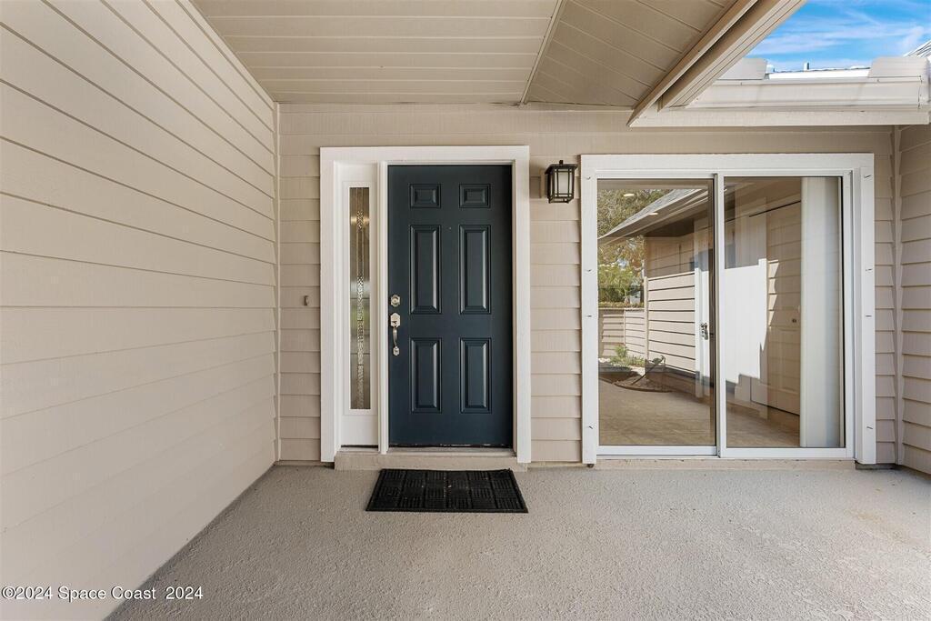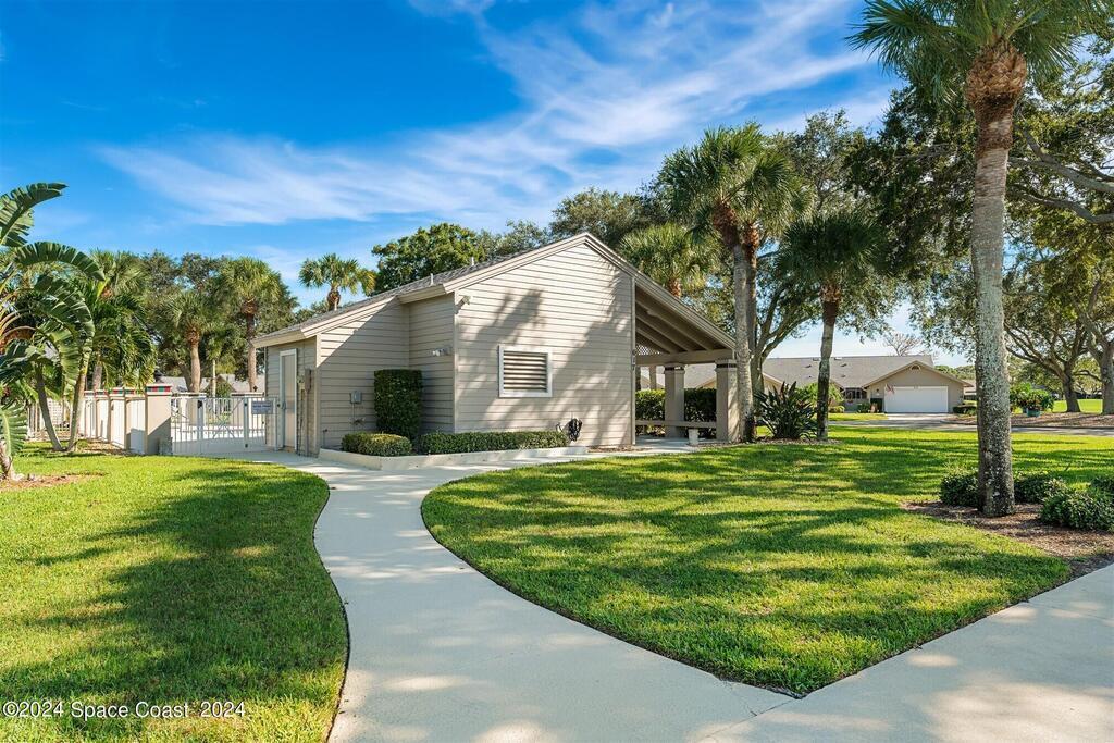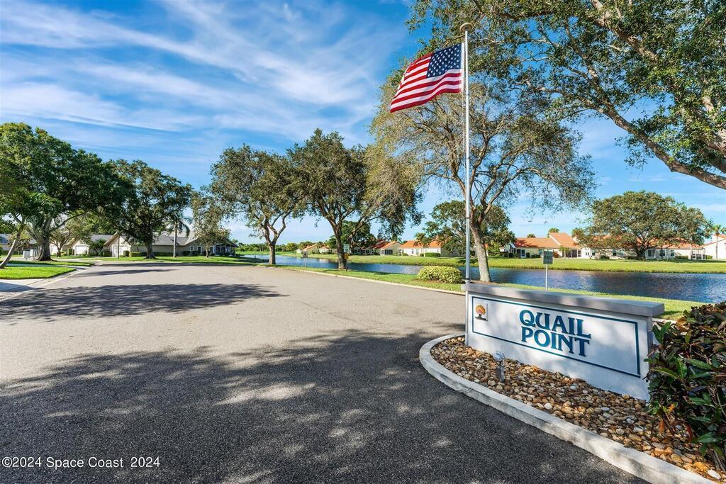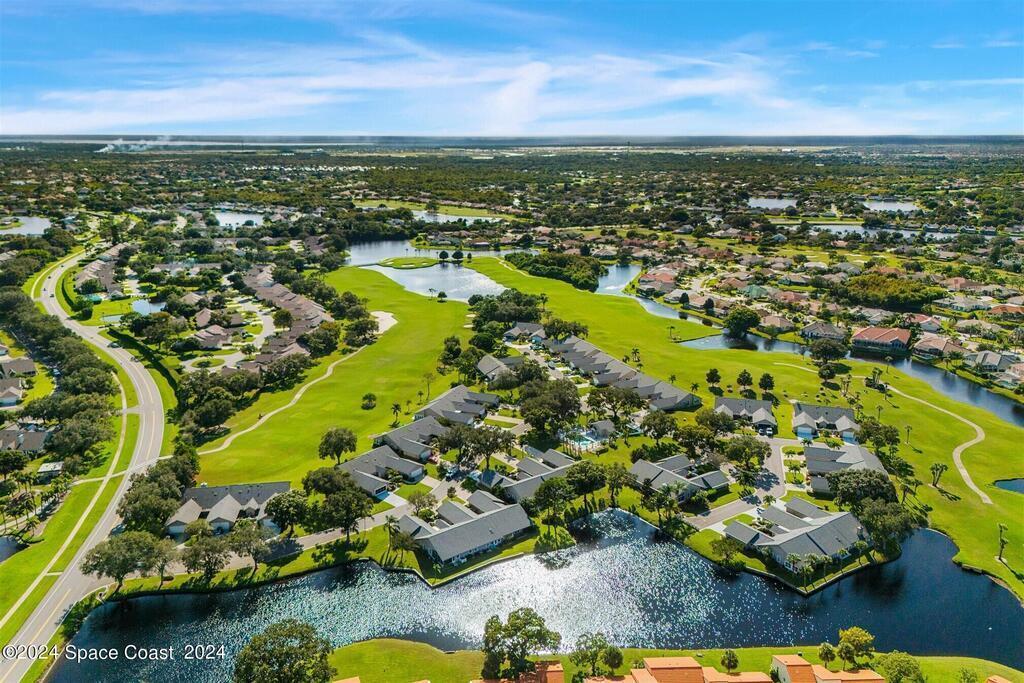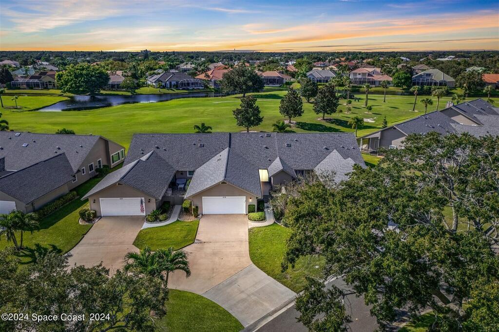 Suntree direct golf course lot located in Quail Point. Move in ready, two bedroom, two-bath townhome. The open floor plan boasts skylights, new cabinetry, interior doors, hardware, plumbing and paint throughout. Enjoy stunning sunset views across of the 15th hole of the Suntree Country Club. The spacious primary bedroom features a thoughtfully redesigned bathroom with new walk-in shower and Japanese style soaking tub. The original back patio has been incorporated into the home adding 225 SF of AC'd living space (not reflected in tax rolls). Even the front courtyard has been newly landscaped! Oversized 2+ car garage (600 SF) with newly surfaced concrete floor can accommodate a golf cart, two cars and much more. The community pool is directly across the street. Zoned for A rated schools including the new middle school and high school in Viera. HOA fees cover landscaping and pest control making this the perfect low maintenance abode.