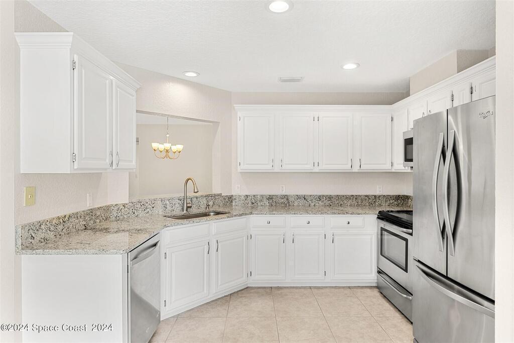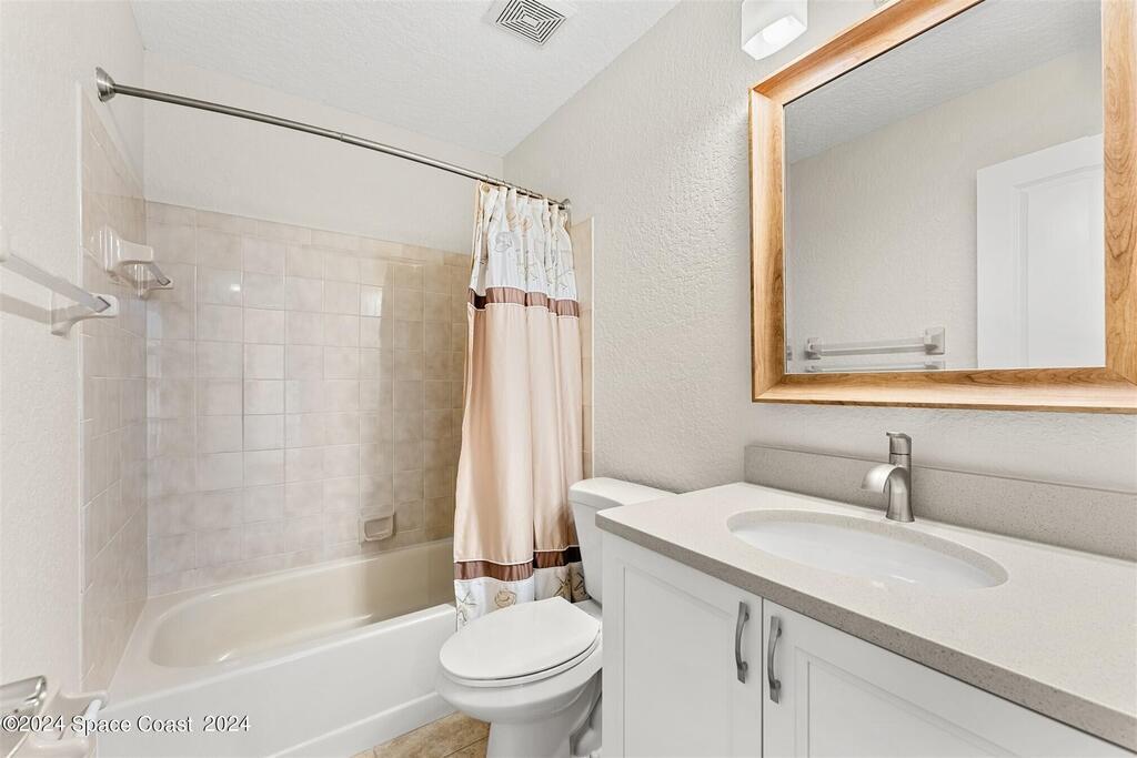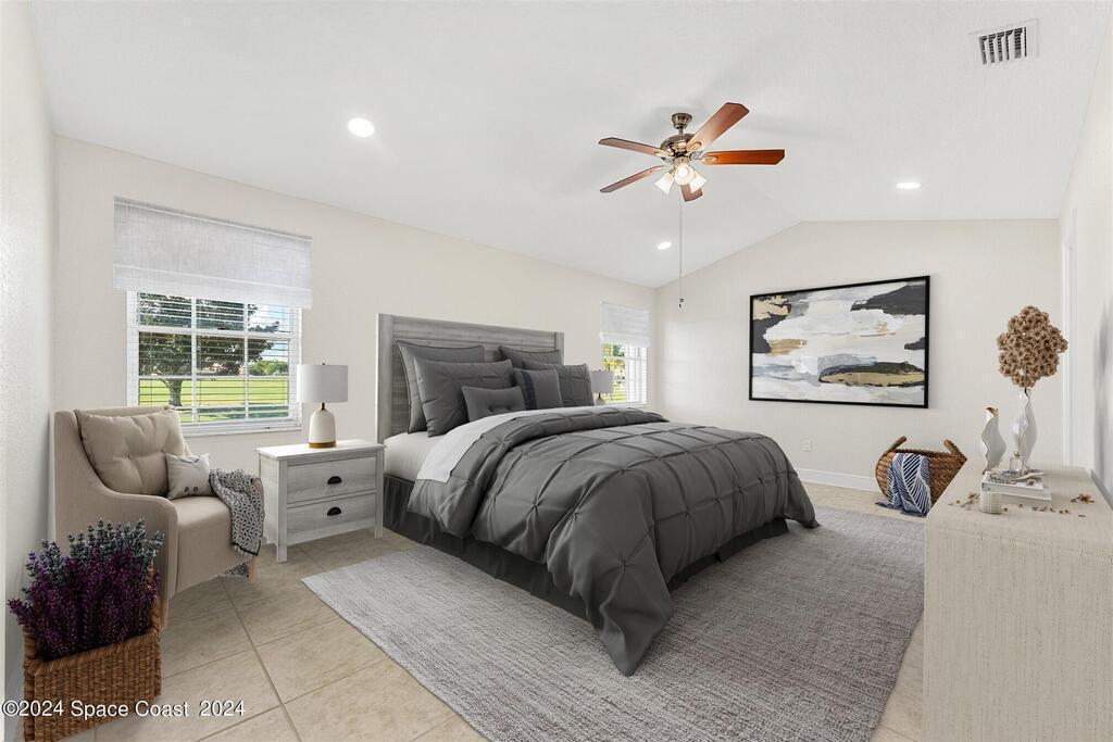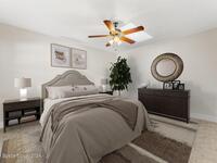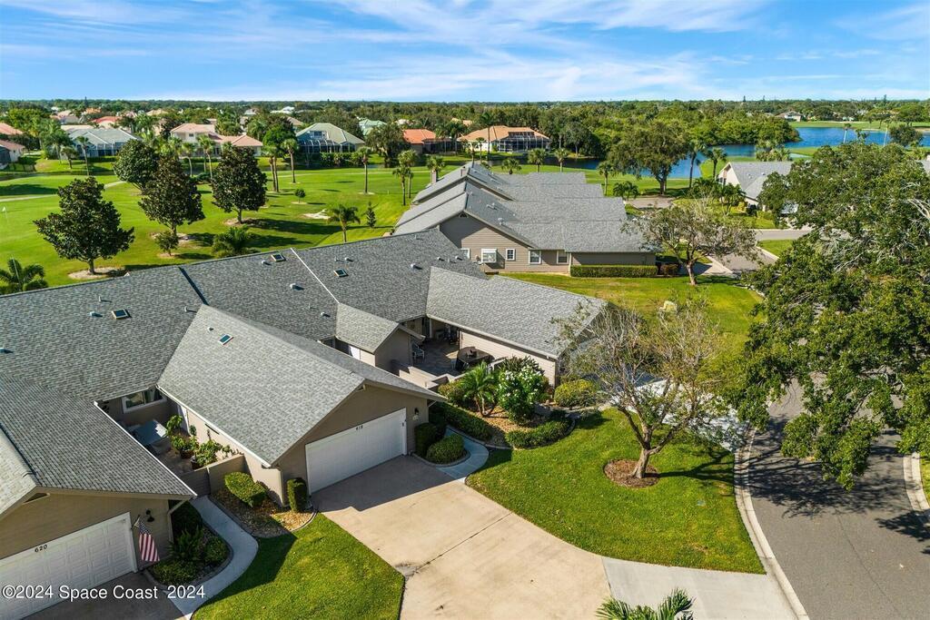 Suntree direct golf course lot located in Quail Point. Move in ready, two bedroom, two-bath townhome. The open floor plan boasts skylights, new cabinetry, interior doors, hardware, plumbing and paint throughout. Enjoy stunning sunset views across of the 15th hole of the Suntree Country Club. The spacious primary bedroom features a thoughtfully redesigned bathroom with new walk-in shower and Japanese style soaking tub. The original back patio has been incorporated into the home adding 225 SF of AC'd living space (not reflected in tax rolls). Even the front courtyard has been newly landscaped! Oversized 2+ car garage (600 SF) with newly surfaced concrete floor can accommodate a golf cart, two cars and much more. The community pool is directly across the street. Zoned for A rated schools including the new middle school and high school in Viera. HOA fees cover landscaping and pest control making this the perfect low maintenance abode.