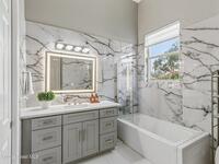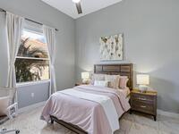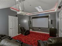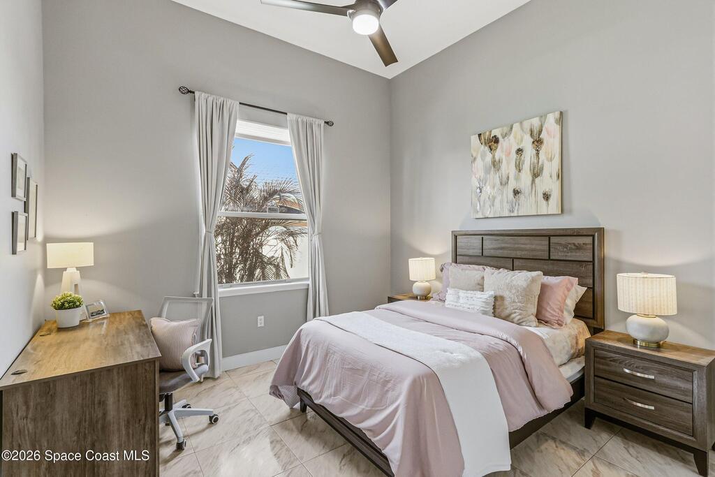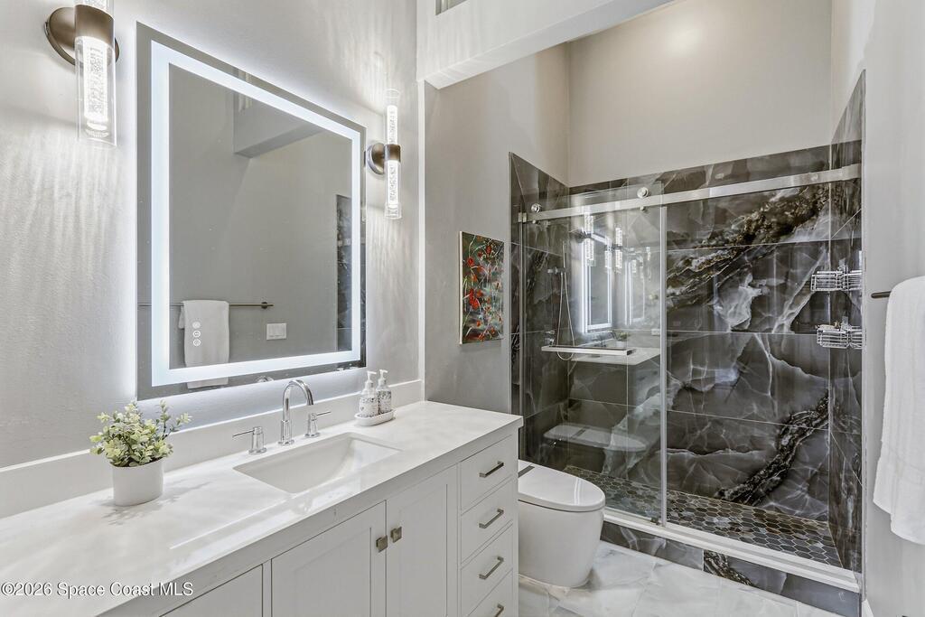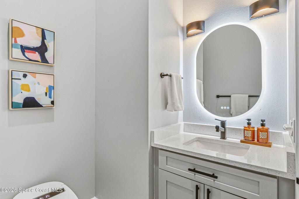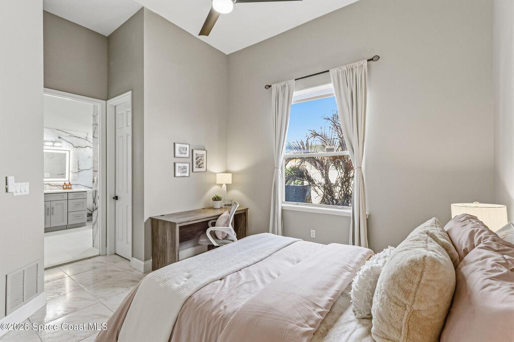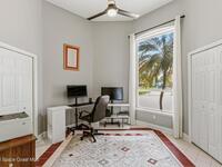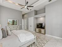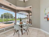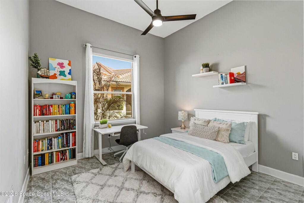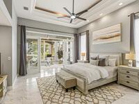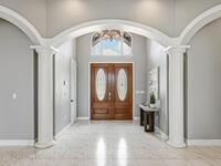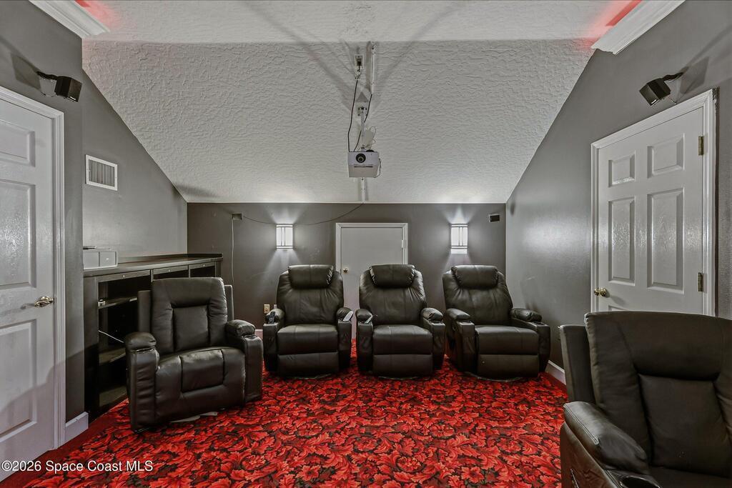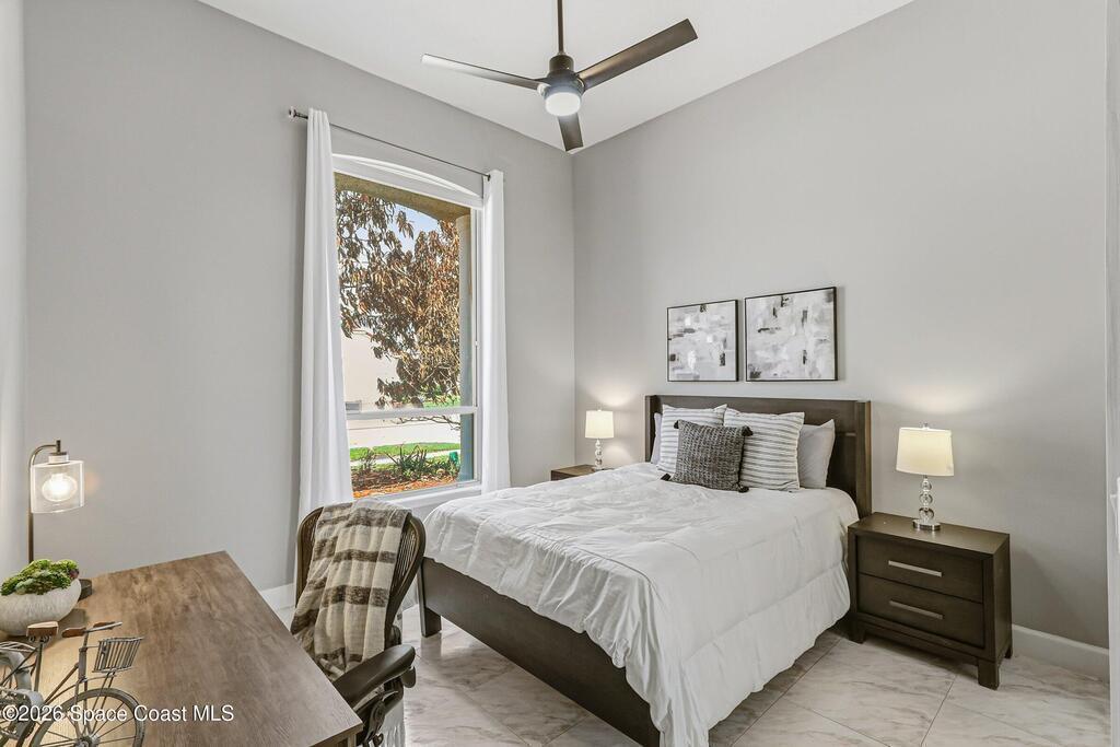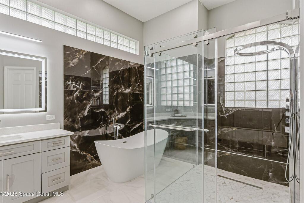 Discover an extraordinary lakefront estate in the Legends at Suntree. Offering 4, 449sq ft of refined living space with sweeping golf course and lake views, this impressive 5 bedroom 3.5 bath residence blends grand scale with elegant design. Beginning with a dramatic 16' foyer and soaring 12-14' ceilings throughout accented by tray ceilings in the primary suite, living, family and dining rooms this home is designed for both sophisticated entertaining and everyday comfort. The home features a private library, media room and open living flow that captures stunning water and fairway vistas. The chef kitchen is beautifully appointed with quartz countertops a striking waterfall island and GE Cafe appliances. The luxurious primary suite offers a slipper tub, oversized walk-in shower and expansive his and hers closets. Outdoors a resort style pool and screened lanai overlook the tranquil lake and golf course scenery, completing this exceptional three-car garage estate. Renovations done in 2024