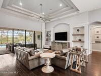Welcome Home to this stunning custom-built luxury home. This home is a blend of contemporary elegance with timeless craftsmanship. As soon as you enter through the double doors, you'll appreciate the open floorplan that beams with bright light, making the space warm and cozy. The gourmet kitchen greets you with a large island, GE Monogram stainless-steel appliances, and a custom bar area. A spacious great room flows effortlessly to the covered lanai and private pool retreat, complete with outdoor kitchen. The seamless indoor-outdoor living space is perfect for both every day living and entertaining. The primary suite is a true sanctuary, boasting a spa-inspired bath with soaking tub, dual vanities, and his and hers closets. Additional features include a home office/5th bedroom, flex space off the 4th bedroom and a three-car garage. This home is also nestled along the first fairway of Duran--one of Brevard's premier golf courses. Fairway Lakes at Viera is a pristine neighborhood with