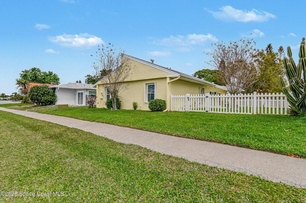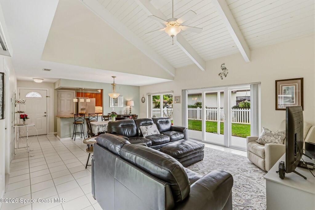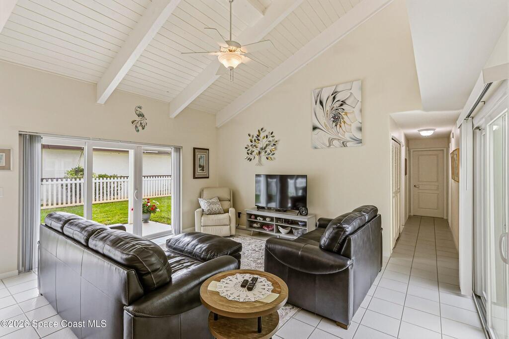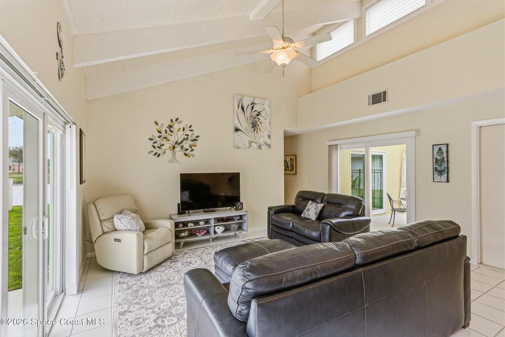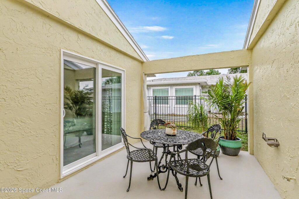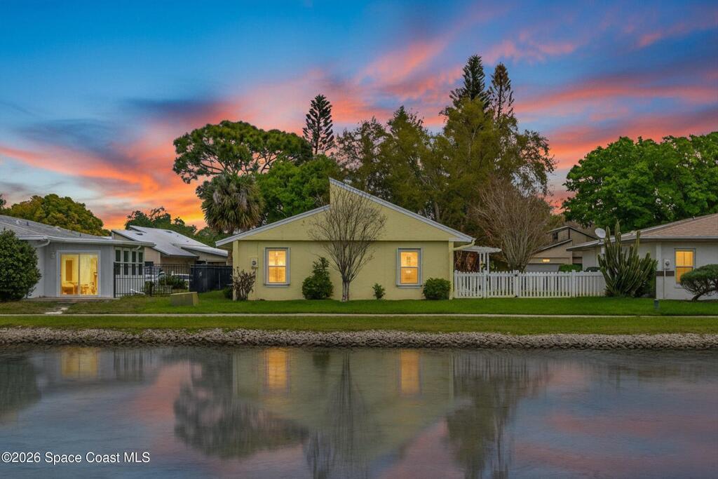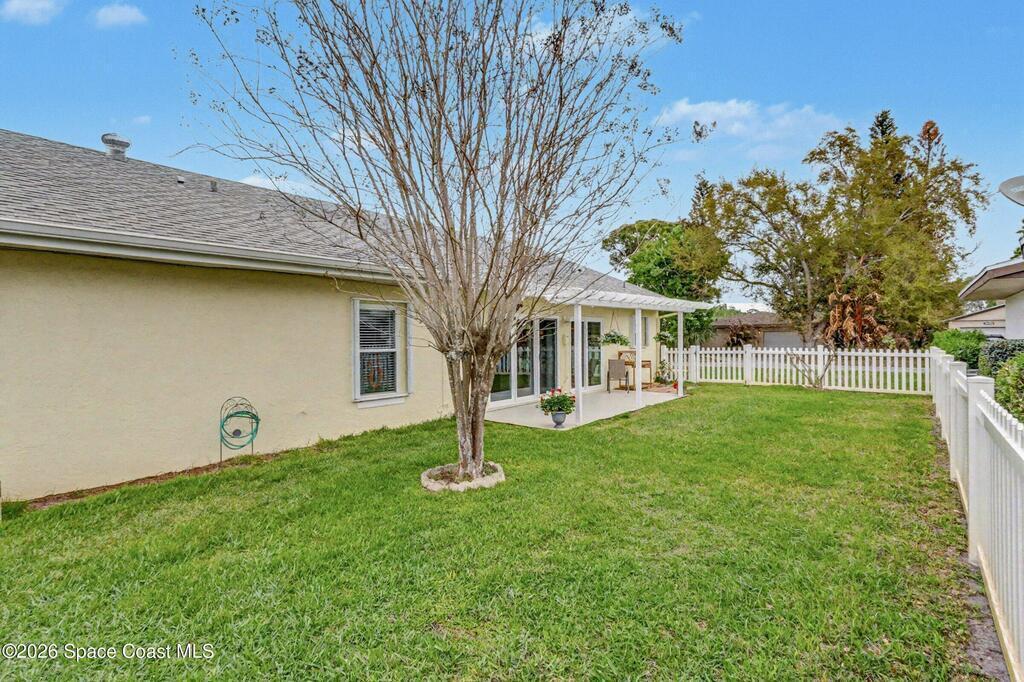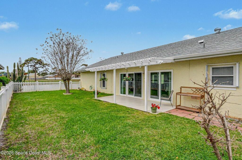 Accepting Back Up offers. Welcome home! Located in the heart of Suntree, this meticulously maintained 3 bedroom / 2 bath lakeview home offers beautiful cathedral wood ceiling and fresh updates throughout. The bright and open floor plan flows seamlessly to your private, fenced-in side yard, where a pergola-topped patio awaits summer gatherings with beautiful views of the lake. Unique center atrium floods the home with natural light; the perfect spot for your private garden retreat. Recent high-value upgrades provide peace of mind: New roof (2018), New AC (2019), New Water Heater (2023) and impact slider doors/windows. This home has it all including underground utilities! Take a walk on the numerous walkways throughout this serene neighborhood connecting you to all of Suntree's amenities. Located minutes from ''A'' rated schools, golf courses, medical facilities, shopping, and the beach. Easy commutes to Patrick SFB, SpaceX, and Orlando. Welcome home to the best of Florida living!