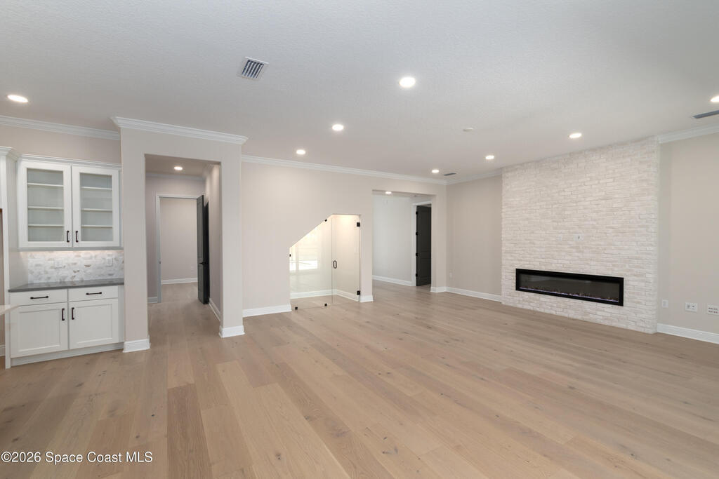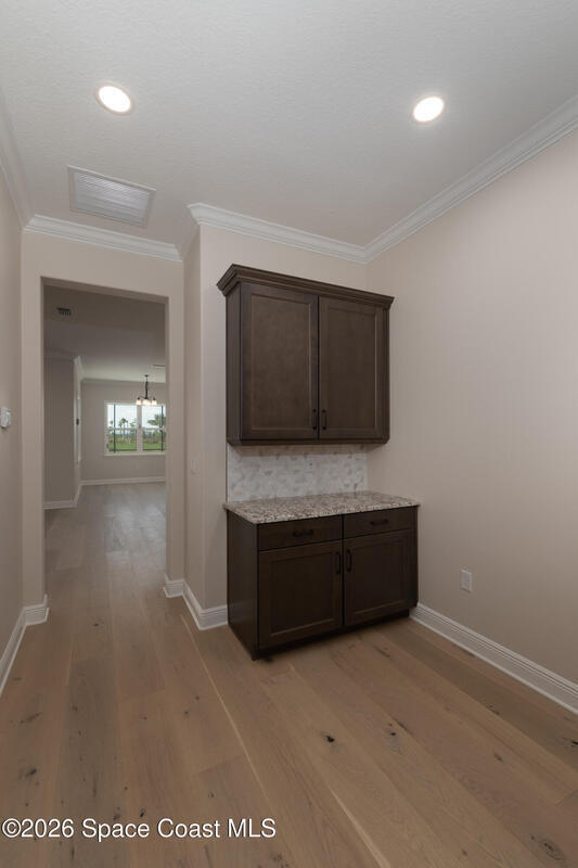 The Ellington is a thoughtfully designed home that blends luxury, functionality, and modern convenience. This residence features an expansive open-concept layout anchored by a gourmet kitchen with quartz countertops, premium cabinetry, a large island, and designer backsplash. The great room is enhanced by a statement fireplace and abundant natural light, creating an inviting space for everyday living and entertaining. A private study and flex room offer versatility, while the signature power pantry provides added storage and prep space. Upstairs, a spacious lounge and secondary bedrooms complement the elegant primary suite, complete with a spa-inspired bath featuring floor-to-ceiling tile, a frameless glass shower, and upscale finishes. Smart home technology, impact windows, and elevated design details throughout complete this exceptional home.