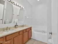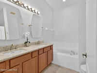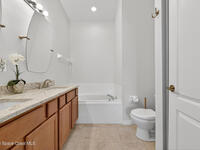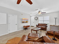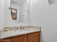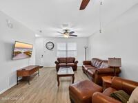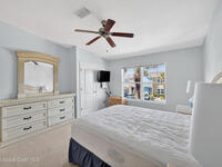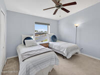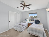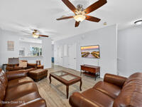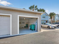 Beautifully maintained two-story townhome in gated Oceanside Village with open-concept living area and tile flooring throughout main living areas. Features include a screened-in rear patio with clubhouse view, detached garage, and guest parking. The home offers a modern kitchen with quartz countertops and updated bathroom finishes. Located in a gated community with resort-style amenities including pool, clubhouse, tennis courts, and playground, with HOA covering roof, exterior, landscaping, and insurance. Beachside location just minutes to the ocean with convenient access from both Eau Gallie Blvd and A1A. Close to restaurants and shopping including Texas Roadhouse, Chipotle, Starbucks, and Walmart. Currently the only available unit in Oceanside Village.