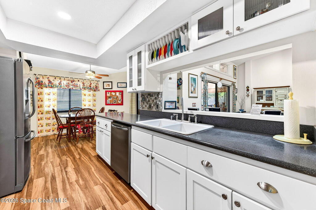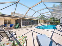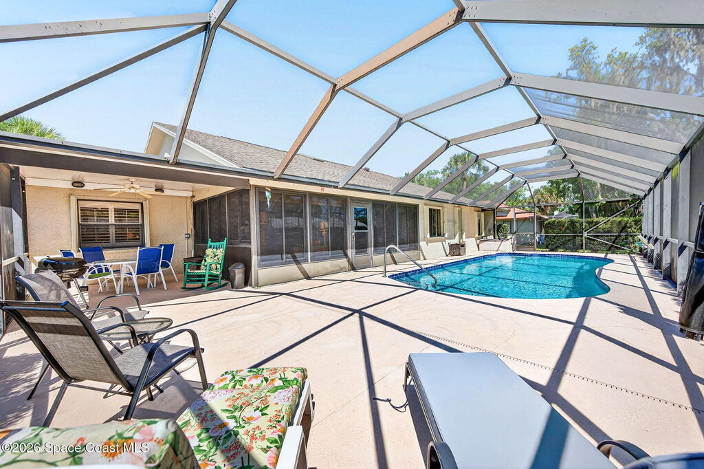 Conveniently located in the desirable Lake Washington area, this beautifully maintained 3-bedroom, 2-bath home offers a sought-after split-bedroom floor plan, providing privacy and comfort for both owners and guests. Enjoy peace of mind with a whole-house Generac generator, accordion storm shutters, a 2021 roof, and an impact skylights. The bright and airy interior features vaulted ceilings and an open living and dining area, creating a seamless flow that is perfect for everyday living and entertaining. The spacious layout includes an enclosed Florida room under air making it ideal for year-round relaxation, a home office, homeschooling, or additional living space. The kitchen is well-appointed with solid surface countertops, stainless steel appliances, a natural gas range, and a cozy breakfast nook. Just off the kitchen, a generously sized laundry room provides extra pantry space and storage. The primary suite is designed for comfort, featuring private access to the pool area, a