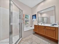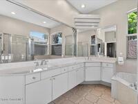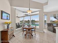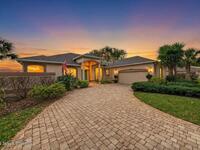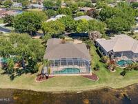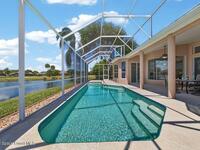 Seeking the perfect Florida coastal lifestyle on the Space Coast? Welcome to this inviting 4 bedroom, 3 bath waterfront pool home, overlooking a championship 18-hole golf course! Step through your front door into a light-filled living space where soaring ceilings and a thoughtfully designed split floor plan create an immediate sense of openness and ease-all beautifully framed by endless water views! Step outside and relax on your large screened patio, complete with heated pool and spa - your private oasis. The spacious primary suite offers a serene retreat, with a sitting area, and spa-inspired bath, featuring a jetted tub, dual vanities, separate shower and walk-in-closets. At the heart of the home, the kitchen...a chef's dream! An Electrolux Gas Range and Samsung Refrigerator boast dual ice makers-perfect for entertaining! There's a dedicated laundry center and oversized 2-car garage. Years of enjoyment await in this premier Baytree community with nearby dining, shopping & the beach!