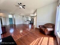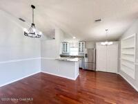 Welcome to this beautifully maintained 3-bedroom, 2-bathroom home in Viera, located on a peaceful pond. This home features an open layout ideal for both everyday living and entertaining. Step inside to find warm, rich wood flooring that flows throughout the spacious living and dining areas, complemented by abundant natural light and soaring ceilings. The updated kitchen has granite countertops, crisp white cabinetry, and a convenient breakfast bar that opens to the main living space. The thoughtfully designed split-bedroom floor plan provides privacy, with a primary suite featuring custom built-in closet space for added functionality! Outside, enjoy Florida living at its best on your private patio or enclosed porch, with pond views. Conveniently located near top-rated schools, shopping, dining, and major roadways, this home combines tranquility with accessibility.