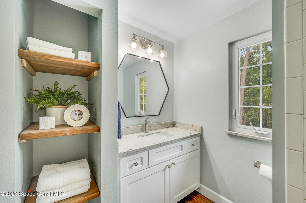 Set on a rare half acre lot with no HOA, this beautifully renovated West Melbourne home offers the space, privacy, and style that rapidly-built tract homes just can't match. The main floor has been completely updated, blending modern finishes with the kind of layout that actually works for real life. Outside, an oversized pool and expansive yard create a true outdoor living space; something nearly impossible to find in newer communities. Surrounded by beautiful homes in an established area, this property delivers a peaceful setting and a far shorter commute than the mass-produced communities, without sacrificing access to shopping, schools, or major employers. The stately exterior adds lasting quality and endless curb appeal. For buyers who want more than a small lot and a copy & paste home, this home stands out!