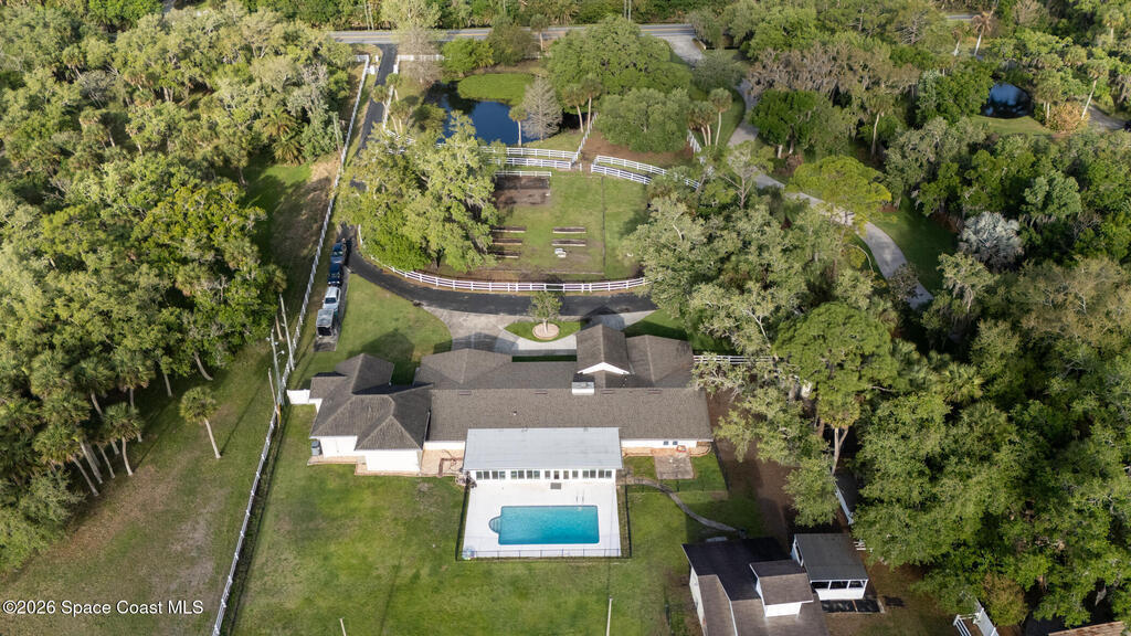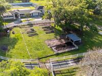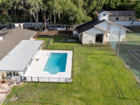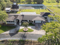 Set on nearly three picturesque acres beneath a canopy of majestic oak trees, this extraordinary estate blends refined living with the charm and versatility of a private ranch retreat. A tranquil front pond welcomes you home, while two fenced pastures create the perfect setting for country living. Ideal for equestrian living, the property is well-suited for horses, with conditional use in place for grazing animals. At the heart of the outdoor experience is a stunning, sizeable swimming pool, offering a private resort-style escape surrounded by peaceful natural beauty, perfect for relaxing afternoons or entertaining under the Florida sun. A private, lighted tennis court adds to the lifestyle appeal, while a concrete block barn offers four stalls, breezeway, and a dedicated air-conditioned tack room. A shed and barbecue area complete the idyllic, pastoral setting. Inside, this expansive residence offers six bedrooms and 3.5 beautifully appointed baths, including a remarkable $200, 000+