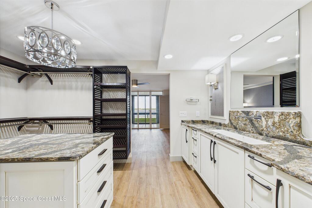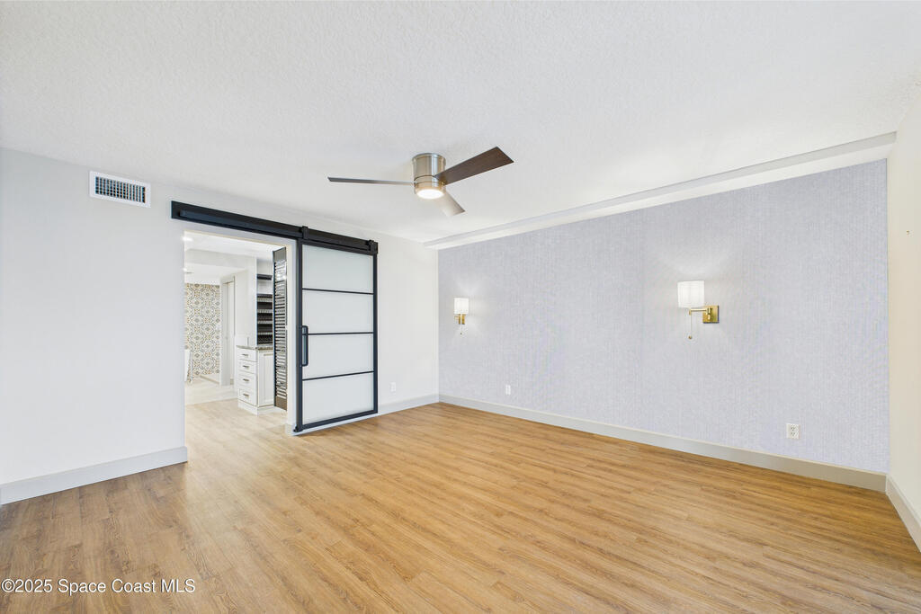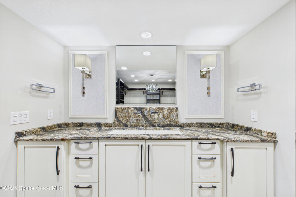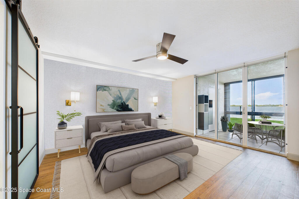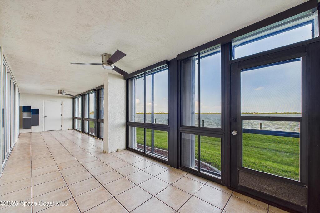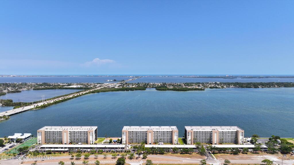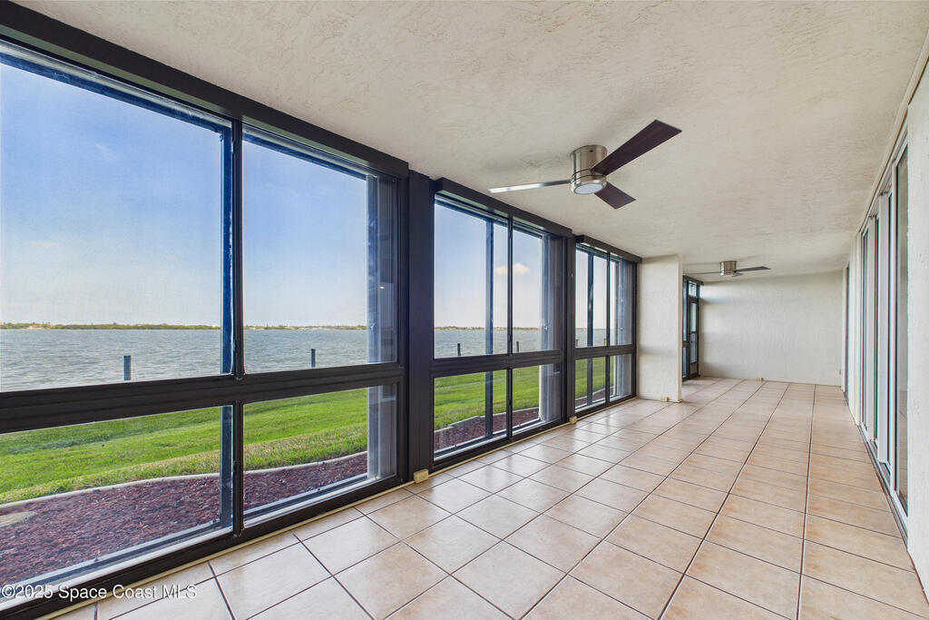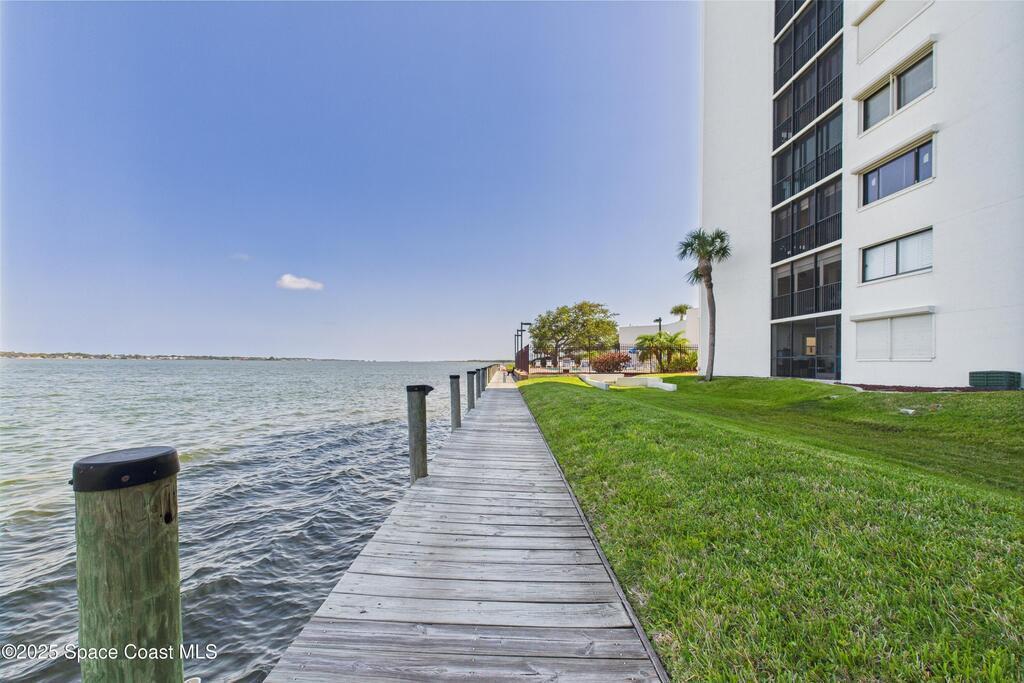 HUGE PRICE REDUCTION! Fantastic location -- near everything: new hospital, shopping, dining, easy access to the Port, Cocoa Beach -- Everything! Completely renovated, 1st floor waterfront condo with luxurious finishes and sweeping views of Sykes Creek. Designer kitchen cabinets, top-of-the-line appliances, and gorgeous custom tile backsplash. Primary bath is a true sanctuary, with a huge walk-in closet, Japanese soaking tub, German fixtures, and an oversized shower with multiple shower heads and body sprays for the ultimate, customizable experience. The guest bath is equally impressive, with high-end finishes, frameless glass, and elegant tile work. Enjoy a split-bedroom plan with your primary suite opening directly to Sykes Creek -- sip your morning coffee while watching dolphins play or rocket launches light up the sky. Passed all milestone inspections with flying colors! Feel confident knowing the property is in excellent condition and the association is proactive and well-managed!