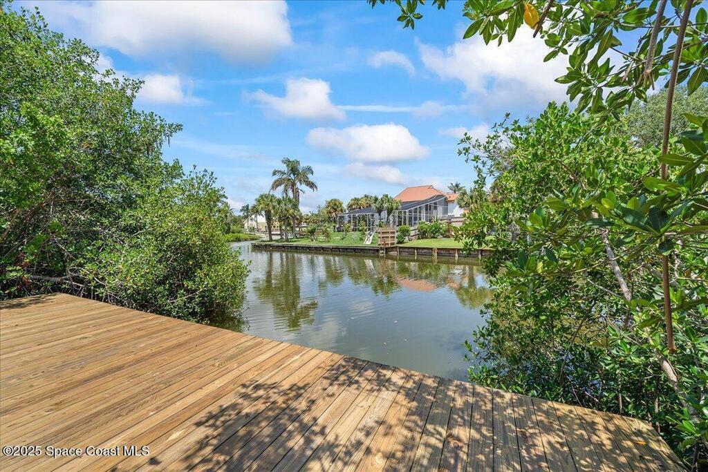 Welcome to waterfront living reimagined. This fully renovated 3 bedroom, 3 bath split-plan canalfront home has a fresh, modern feel with everything brand new. The oversized primary suite is a true retreat with a soaking tub, walk-in shower, dual vanities, and generous closets. The bright, open kitchen flows into the living room and out through sliders to a covered lanai overlooking a spacious backyard. One guest bedroom has its own ensuite, while the other is served by a hall bath--perfect for family or visitors. Outside, a brand-new day dock accommodates up to a 3' draft and is ready for your boat, kayaks, or paddleboards with no fixed bridges between you and the Banana River. An oversized two-car garage and indoor laundry make everyday life simple, while the location puts you minutes from the beach, Port Canaveral, local dining, shopping, the Space Center, and SR-528 for an easy ride to Orlando. This home is move-in ready and made for the coastal lifestyle.