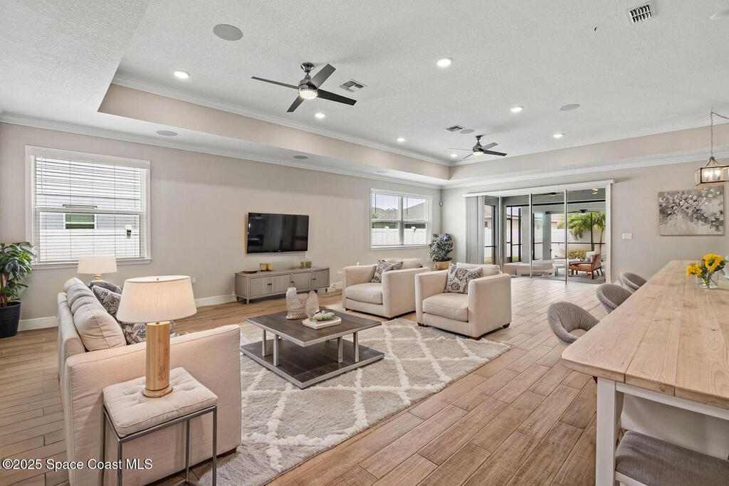 Welcome to Egrets Landing, one of Merritt Island's premier communities. This 4-bed, 3-bath home with a 3-car garage offers a bright, open layout and a dedicated office. Enjoy a private backyard retreat with a pool, spa, and custom stucco gazebo. Inside, features include stainless steel appliances, crown molding, elegant trim work, ceiling speakers, and a spacious primary suite with a walk-in closet. Recent upgrades total over $200, 000 and include a new pool, custom roofed/stucco gazebo, Kevlar roll down blinds, impact windows, and a gas tankless hot water heater. Move-in ready and beautifully maintained--your ideal Florida home awaits!