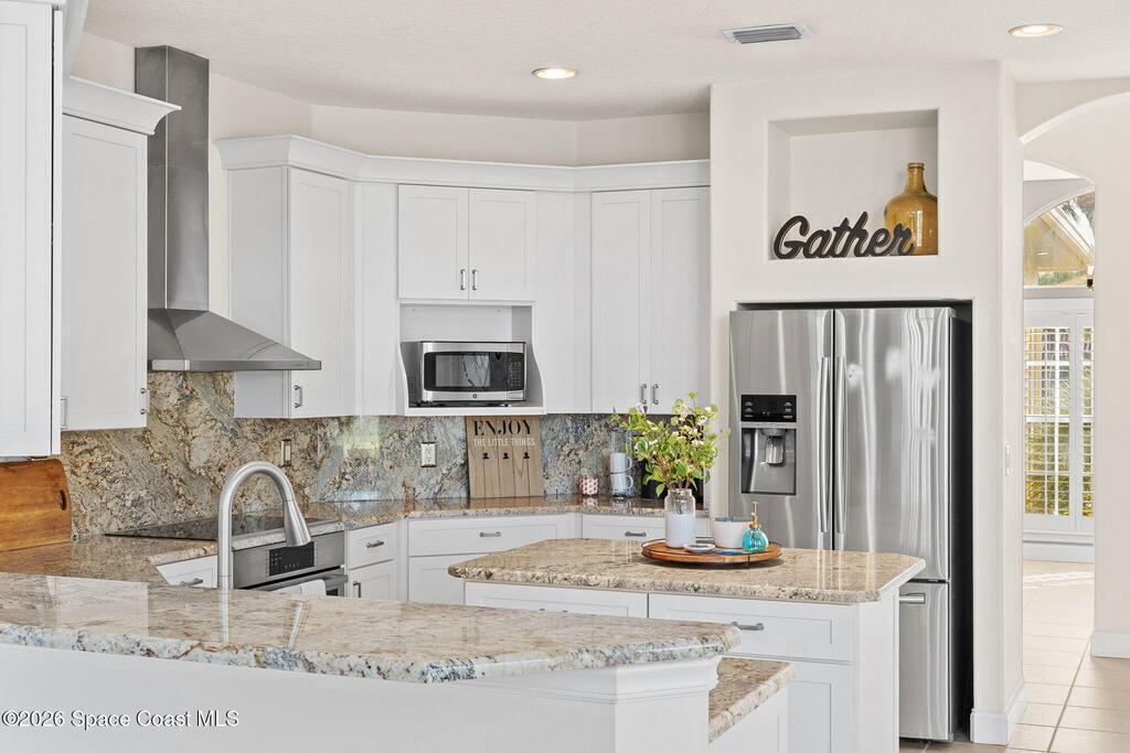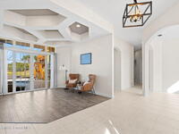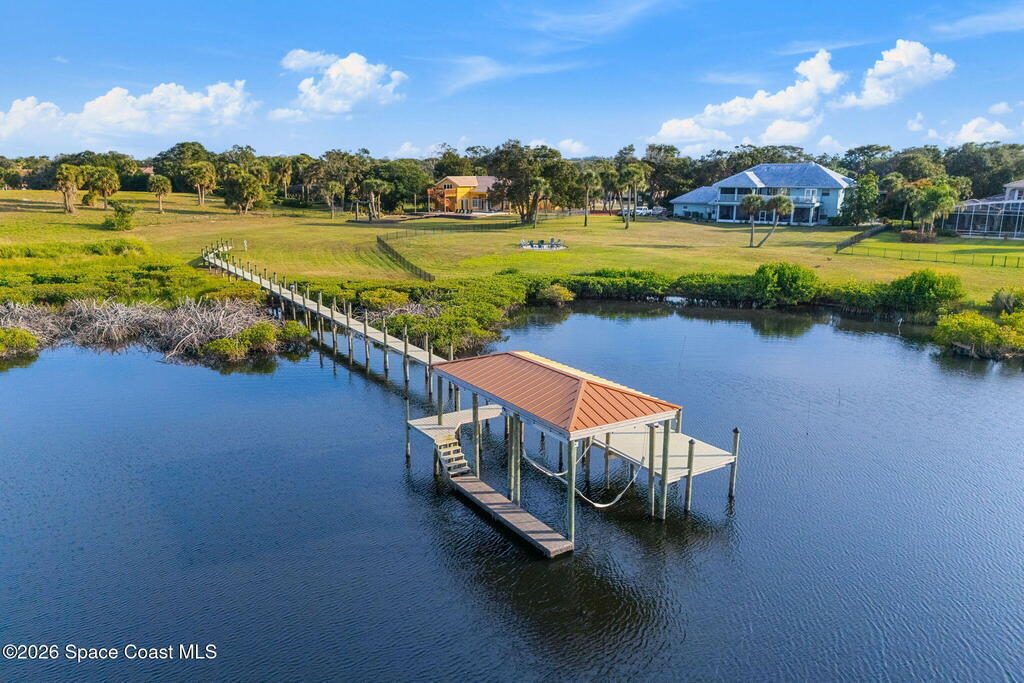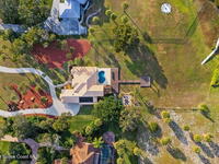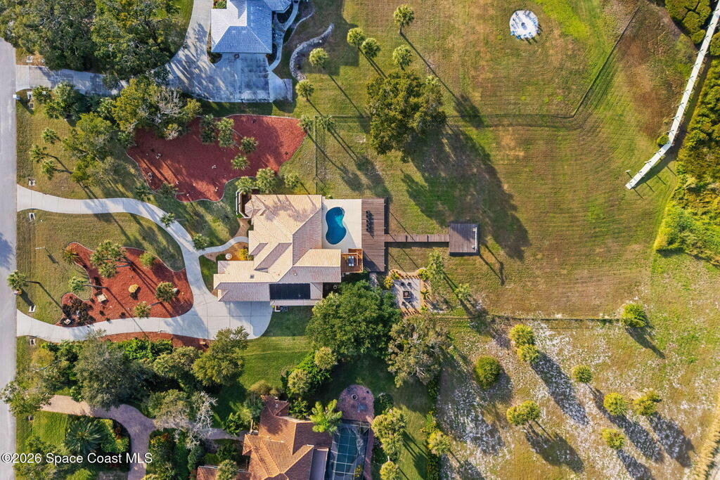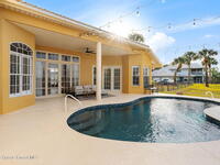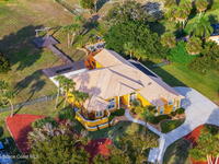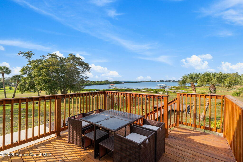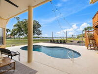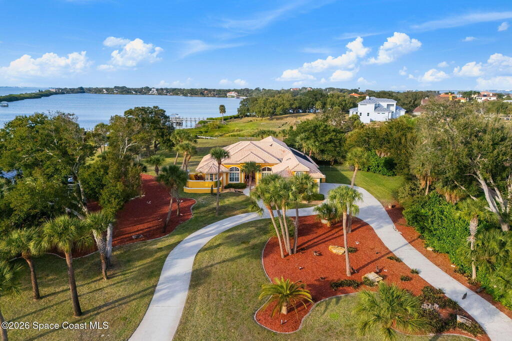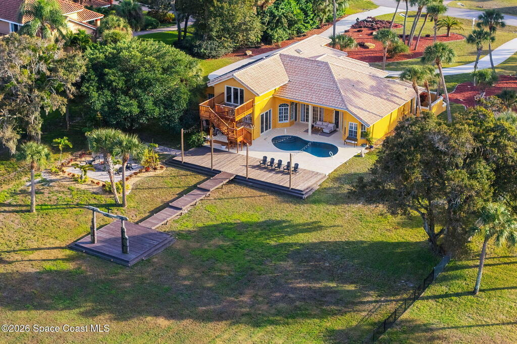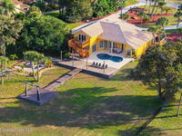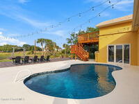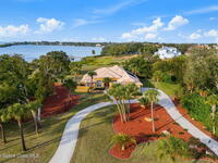 HUGE PRICE REDUCTION!! Luxury living awaits you in this one-of-a-kind Merritt Island Estate. Boasting over 2 acres of property, this pool home is situated on Honeymoon Lake, providing breathtaking views and direct access to the Indian River. The owner's suite is complete with double walk-in closets, separate tub & shower, and dual vanities. Tall white cabinets, granite countertops & backsplash, and stainless steel appliances give the kitchen a bright and sleek look while the breakfast bar, kitchen island, and ample countertops make it perfect for hosting. Two separate upstairs areas provide flexibility for your lifestyle, allowing you to use them as extra bedrooms, gyms, or bonus rooms. Whether from the balcony or from the solar-heated pool, the backyard's northern exposure allows for stunning views of sunrise and sunset. With 2018 barrel tile roof, two new HVACs, and a boat lift already in place, this home is truly turnkey, all you need to do is pull up in the boat!