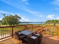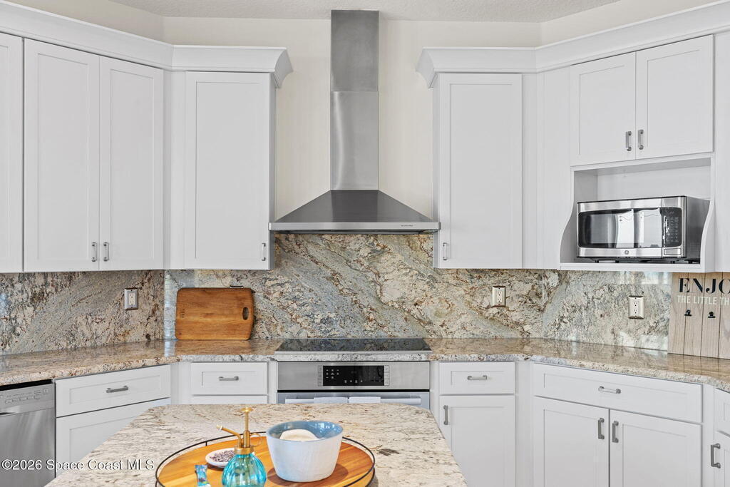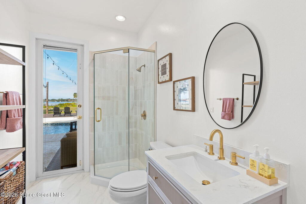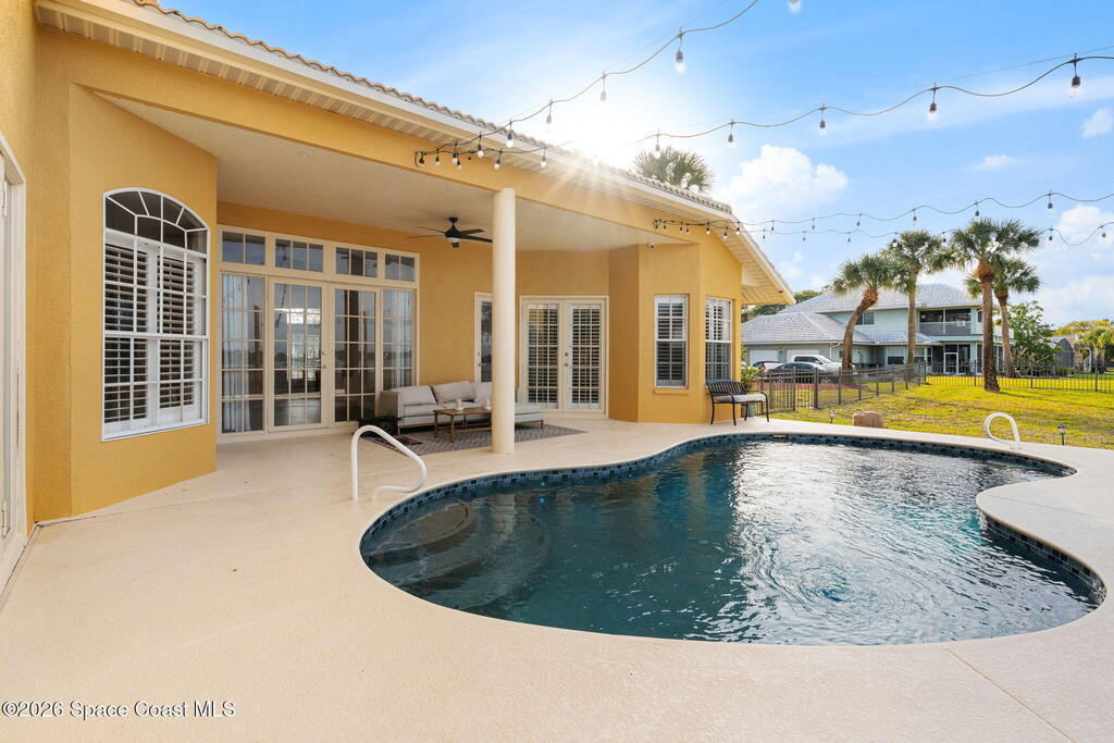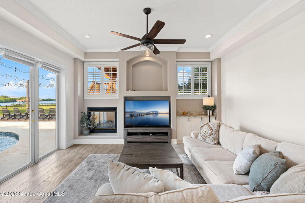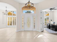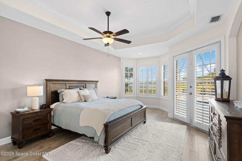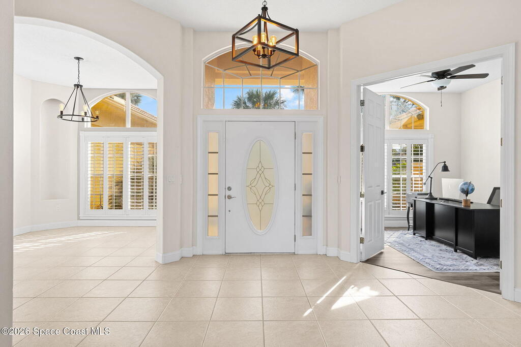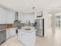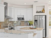 HUGE PRICE REDUCTION!! Luxury living awaits you in this one-of-a-kind Merritt Island Estate. Boasting over 2 acres of property, this pool home is situated on Honeymoon Lake, providing breathtaking views and direct access to the Indian River. The owner's suite is complete with double walk-in closets, separate tub & shower, and dual vanities. Tall white cabinets, granite countertops & backsplash, and stainless steel appliances give the kitchen a bright and sleek look while the breakfast bar, kitchen island, and ample countertops make it perfect for hosting. Two separate upstairs areas provide flexibility for your lifestyle, allowing you to use them as extra bedrooms, gyms, or bonus rooms. Whether from the balcony or from the solar-heated pool, the backyard's northern exposure allows for stunning views of sunrise and sunset. With 2018 barrel tile roof, two new HVACs, and a boat lift already in place, this home is truly turnkey, all you need to do is pull up in the boat!