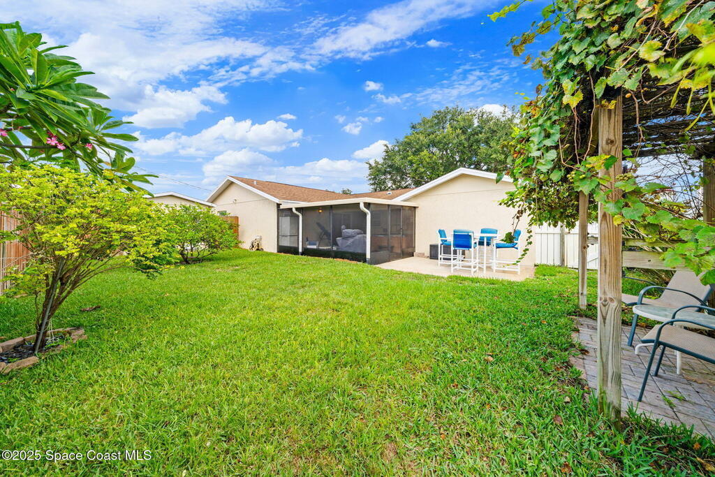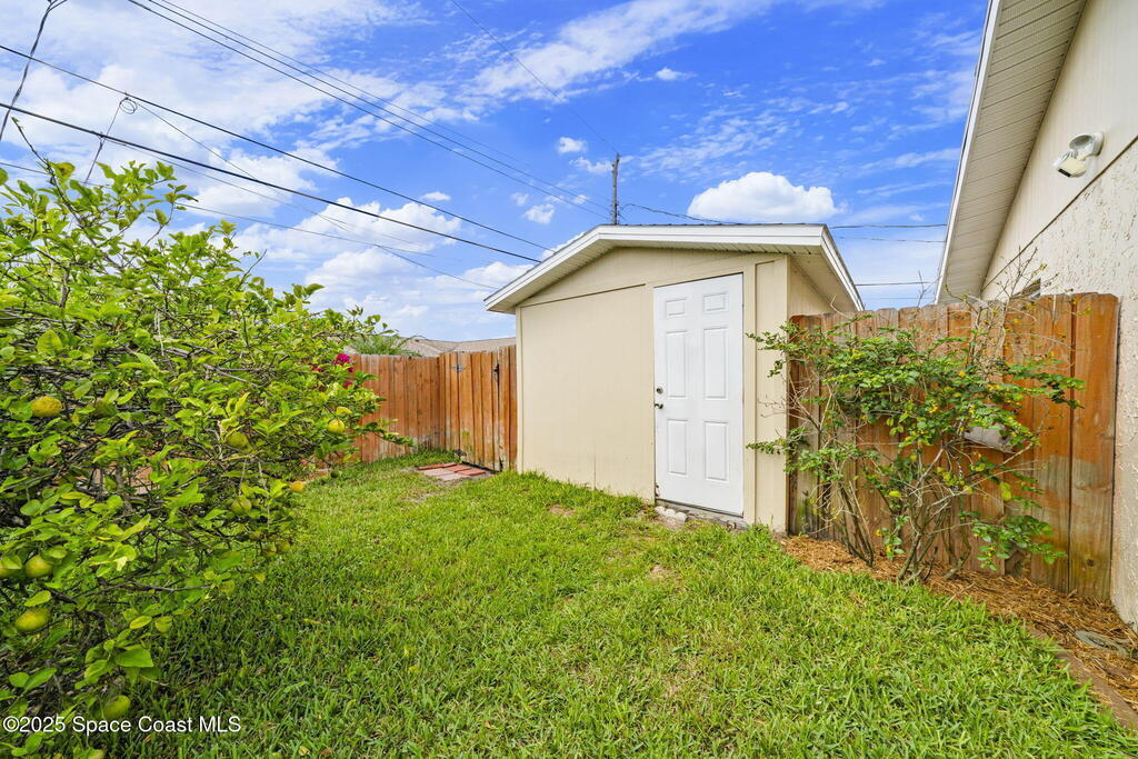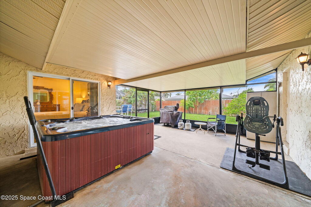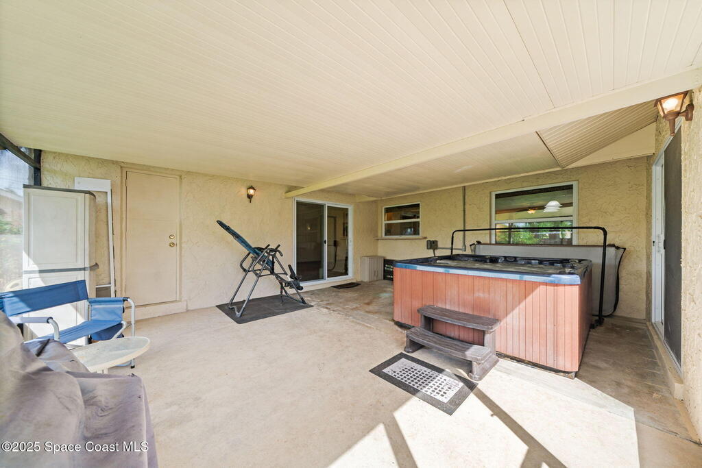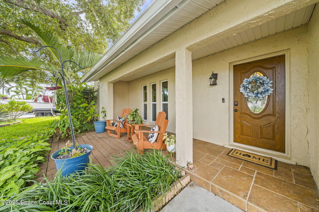 WELCOME to this charming and beautiful Merritt Island home nestled in the heart of Diana Shores. Well maintained and great upgrades throughout! All new windows and sliding glass doors installed 2023, beautifully upgraded bathrooms 2025, stainless steel LG/Whirlpool/Bosch kitchen appliances, hardwood kitchen cabinets, Trane A/C installed 2023, new air ducts, new Honeywell Home Thermostat, new electrical panel, new tankless water heater, Atlantic storm shutters, attic lights, interior and exterior freshly painted 2025, Newest version ADT wireless security on windows and doors, Ring Doorbell, new sprinkler heads front and back yard, new garage door, roof 2011, screened in back lanai, large brick fireplace, Muscadine grapevine arbor in the backyard, Meyer lemon tree, hot tub 2014 with new pump, working shed, refreshing front porch under a gorgeous oak tree, and fenced in backyard! Don't miss out on this heart warming home in a great location!