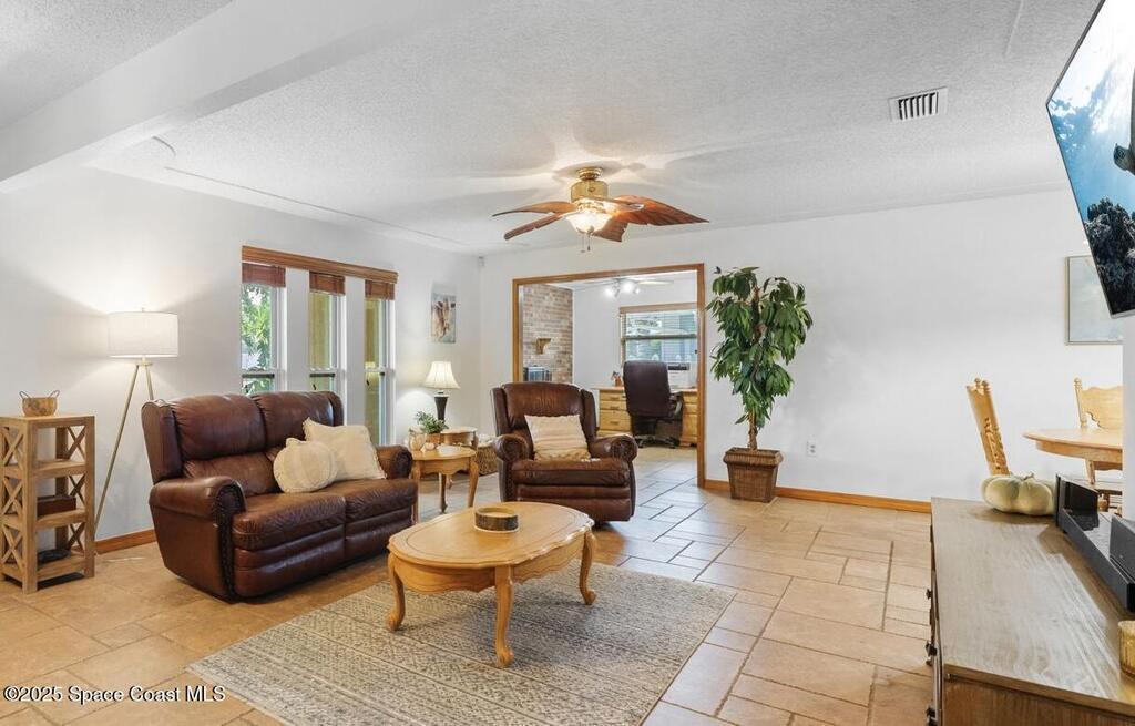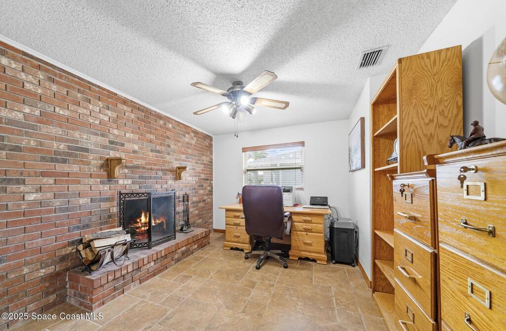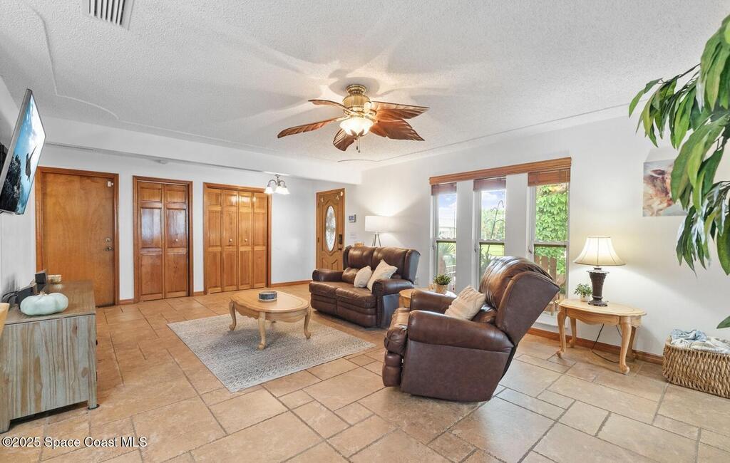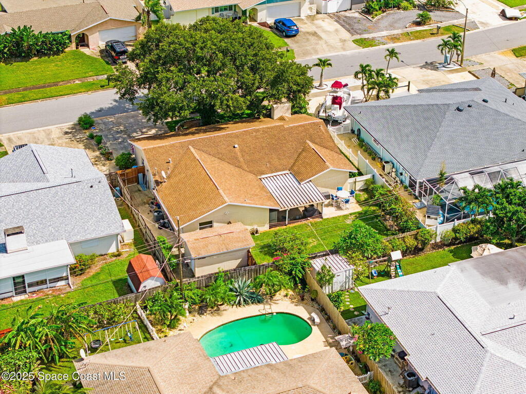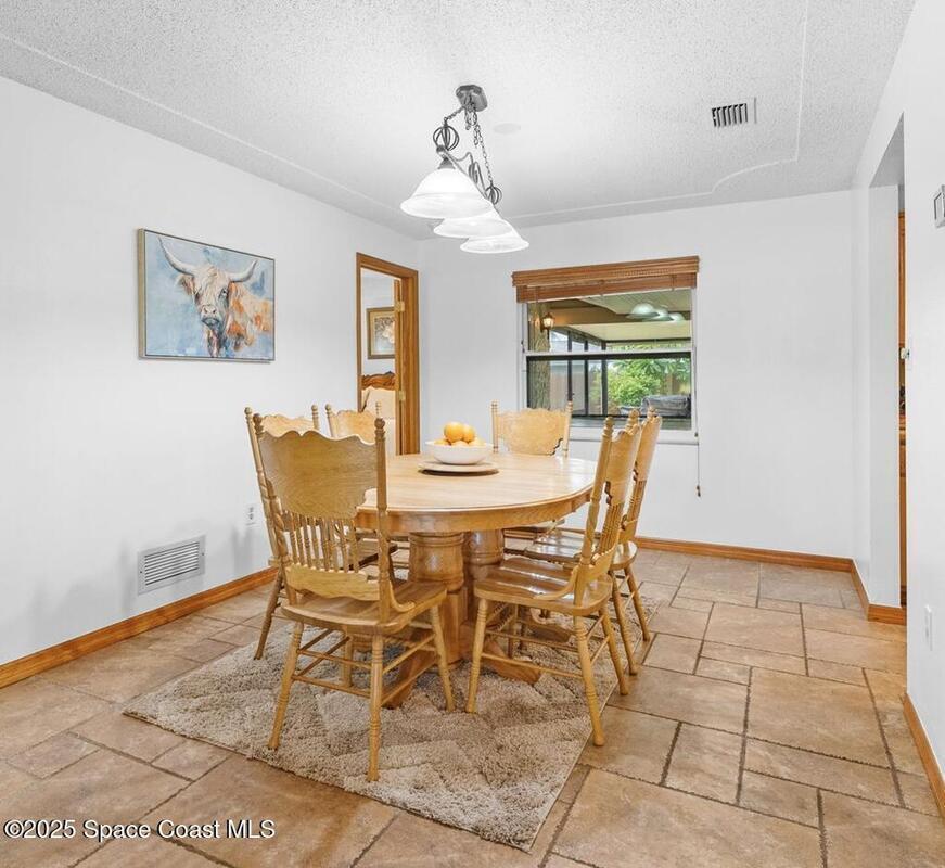 WELCOME to this charming and beautiful Merritt Island home nestled in the heart of Diana Shores. Well maintained and great upgrades throughout! All new windows and sliding glass doors installed 2023, beautifully upgraded bathrooms 2025, stainless steel LG/Whirlpool/Bosch kitchen appliances, hardwood kitchen cabinets, Trane A/C installed 2023, new air ducts, new Honeywell Home Thermostat, new electrical panel, new tankless water heater, Atlantic storm shutters, attic lights, interior and exterior freshly painted 2025, Newest version ADT wireless security on windows and doors, Ring Doorbell, new sprinkler heads front and back yard, new garage door, roof 2011, screened in back lanai, large brick fireplace, Muscadine grapevine arbor in the backyard, Meyer lemon tree, hot tub 2014 with new pump, working shed, refreshing front porch under a gorgeous oak tree, and fenced in backyard! Don't miss out on this heart warming home in a great location!