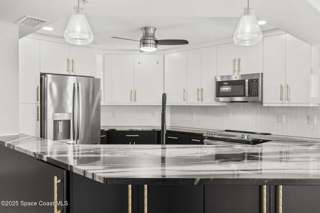 Welcome to the Harbor Del Rio Community, ideally situated in Central Merritt Island. Featuring under building parking space equipped with your very own electric car charger. Three bedrooms, each with private access to the expansive wrap-around balcony (with hurricane shutters for storm protection). The large open-concept design boasts laminate flooring throughout, fantastic, updated kitchen with new appliances. Primary bedroom offers dual closets, and an en suite with double vanities, a spacious walk-in shower, and a separate garden tub. The kitchen and bathrooms are finished with solid surface countertops, complemented by window treatments throughout and a generous laundry room. The community provides amenities such as a Pool/Spa, Gym, and Clubhouse. It's conveniently located by the NEW hospital being built and minutes away from shopping, dining, and the world-renowned Cocoa Beach.