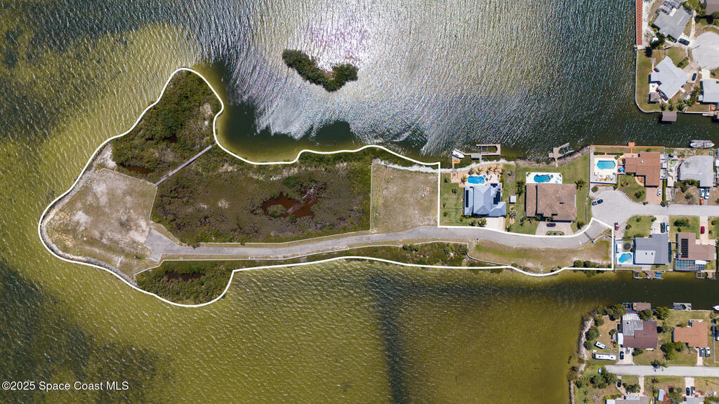One large estate lot or two buildable lots. Gated community. Riparian rights may allow a helicopter landing pad over the river portion of a submerged land deed. Unique peninsula dredged in 1954 with breathing taking views of space launches, sunrises, sunsets, full moon risings, cruise ships, Cape Canaveral and Cocoa Beach nighttime skylines. Excellent shoreline protection by seawall and or coquina revetment. Excellent fishing area. All utilities underground