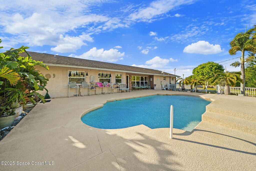 Experience breathtaking sunsets and vibrant waterfront living from this rare 4+ acre estate on coveted North Merritt Island. With 350 feet of direct Indian River frontage and a private dock, this property offers a unique connection to nature, private and secluded, yet with a front-row seat to the excitement of the booming space industry. Set at the end of a quiet street surrounded by lush tropical landscaping, this serene haven offers unmatched privacy and endless possibilities. Cruise from your backyard to nearby islands, dockside restaurants, or through the Canaveral Locks for a day of offshore fishing and adventure. The existing home is full of character and offered as-is, perfect for a peaceful retreat or as the ideal foundation to build your dream waterfront estate. With a gorgeous pool area and ample space to design a custom residence, imagine expansive river views, resort-style outdoor living, and sunsets that paint the sky in vivid color.