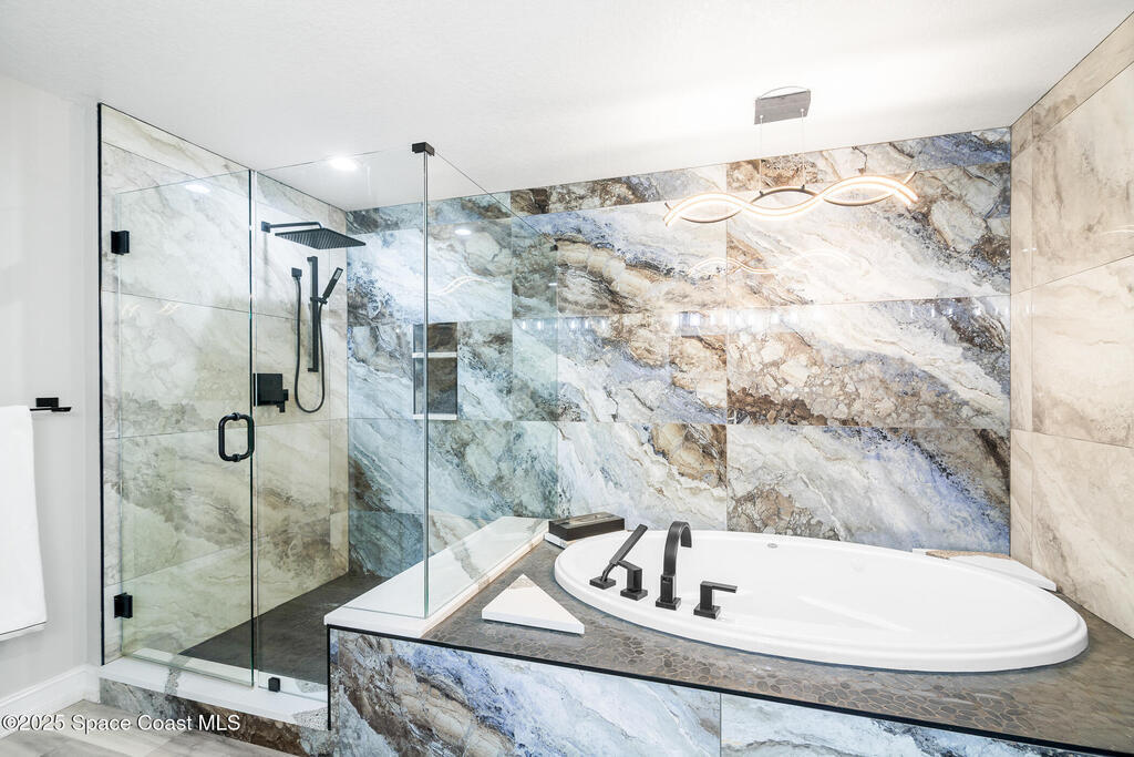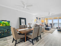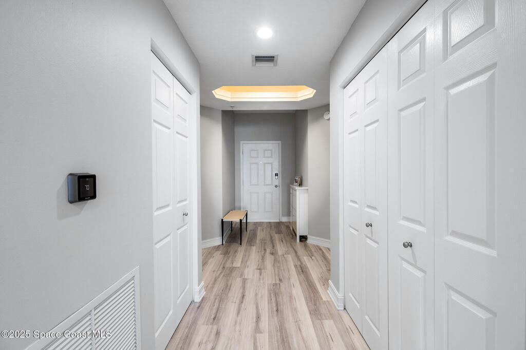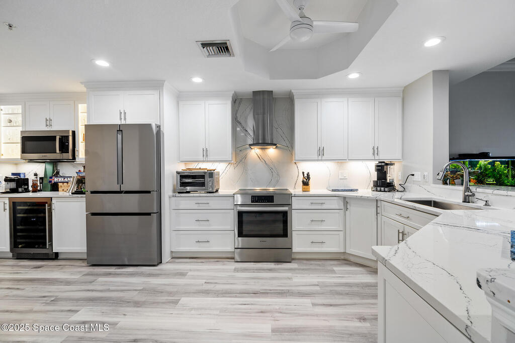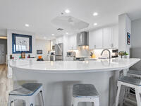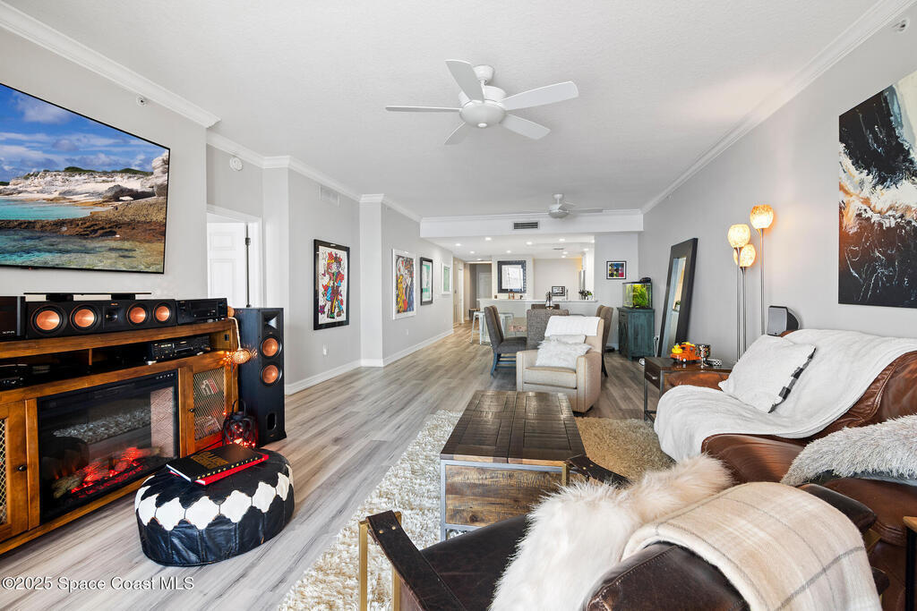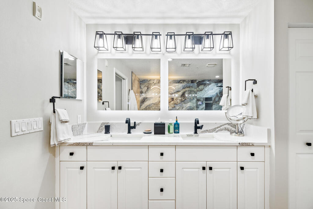 THE STANDOUT TOP FLOOR direct riverfront unit at Island Pointe! Don't go through the hassle of a Condo Renovation! This is the unit you have been waiting for. Arguably the most modern renovated unit on the market in this gated community in Merritt Island with two pools, clubhouse, gym, tennis and more. Inside you'll find a Miami-style renovation with a beautiful Cambria Quartz kitchen with tons of counter space and all Bosch SS appliances. Dry bar with built in wine fridge. Open concept with lots of space and large pantry. Complete bathroom renovations with matching quartz/resin/stone features, defog backlit mirrors and high end hardware. Tons of storage and super high 10ft ceiling with floor to ceiling sliders to waterfront balcony. Laundry room with sink and high end washer/dryer included. Guest rooms have nice view and plantation shutters. Sweeping Indian River views and beautiful rocket launch/sunset views! Private one car garage with shelving and open guest parking.