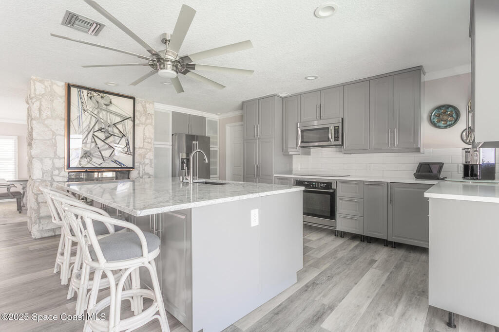 Seeking peace, privacy, and premium waterfront living with spectacular sunsets? You will experience some of the most amazing sunsets in this tastefully remodeled riverfront home.This home has been remodeled from roof to floors in 2016 with several more recent updates, creating a perfect blend of comfort and peace of mind. This home is perfectly positioned on the west side of Newfound Harbor, the desirable Sykes Creek side, offering quick and easy access to the Banana River. A true fisherman's dream, cast a line right off the end of your private boat dock while enjoying dolphins, manatees, and other wildlife that visit your backyard. Drop your kayak into the water from the dock's launch platform and paddle alongside the incredible wildlife that makes Sykes Creek home. Enjoy the peaceful, protected setting of Sykes Creek while still being just a short distance from open water, ideal for anglers, boaters, and anyone who wants effortless riverfront living. Updated circular paver driveway